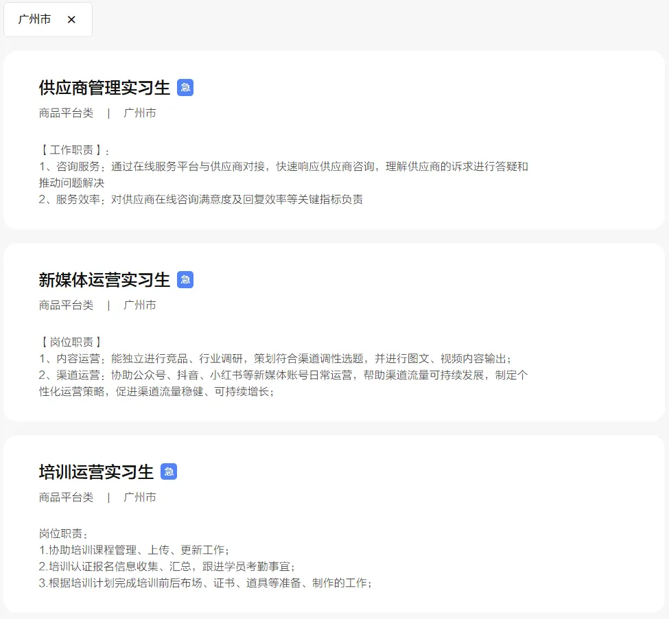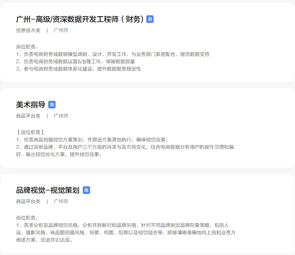 ▌本文来源:SHEIN招聘官网,美团招聘官网,唯品会招聘官网,本地宝广州招聘综合整理;