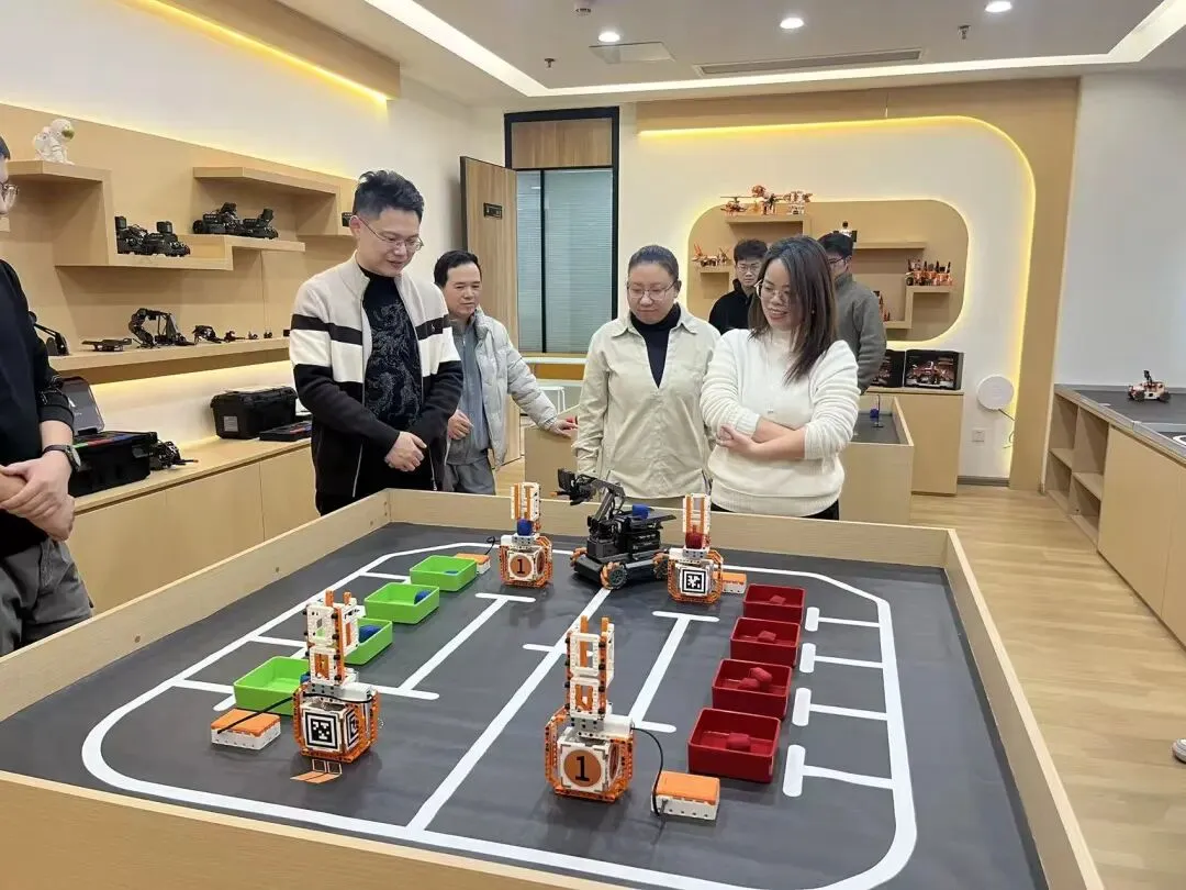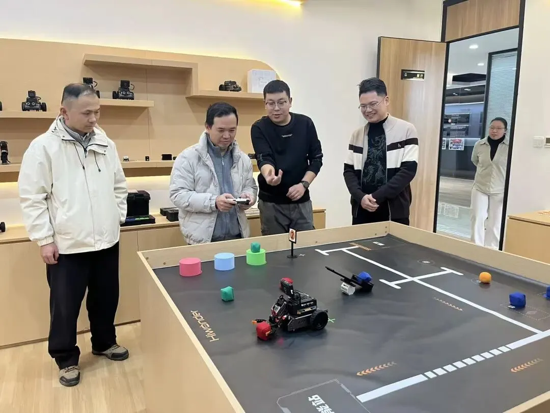 在幻尔科技通识教育展区,双方就人工智能通识课程设计与教学形式进行了交流。学院教师现场体验了通识产品的趣味操控与竞技演示,亲身感受智能机器人在教学中的吸引力和应用潜力。这类互动性强、趣味度高的产品,可为订单班前期激发学生兴趣、夯实技能基础提供有力支持。