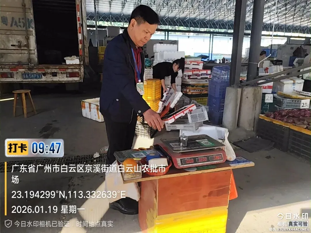2、1月19日上午,市场管理部工作人员在场内开展计量器具专项抽检行动,杜绝“缺斤短两”现象,切实维护交易公平。