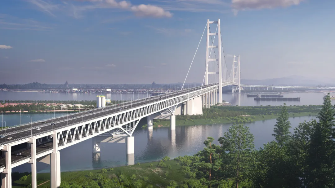 项目主体工程由跨江主桥及陆域引线工程组成。其中,主桥狮子洋大桥为关键控制性工程,是世界首座超2000米双层悬索桥,采用2180米跨径“一跨过江”,建成后将创造双层悬索桥“主跨跨径、主塔塔高、锚碇基础、主缆规模、车道数量”五项世界第一。