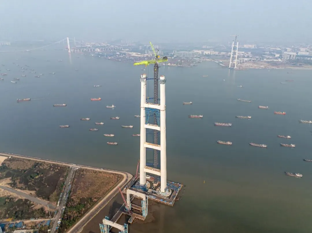 狮子洋大桥主塔高度突破300米大关