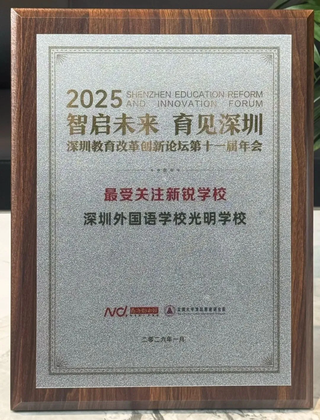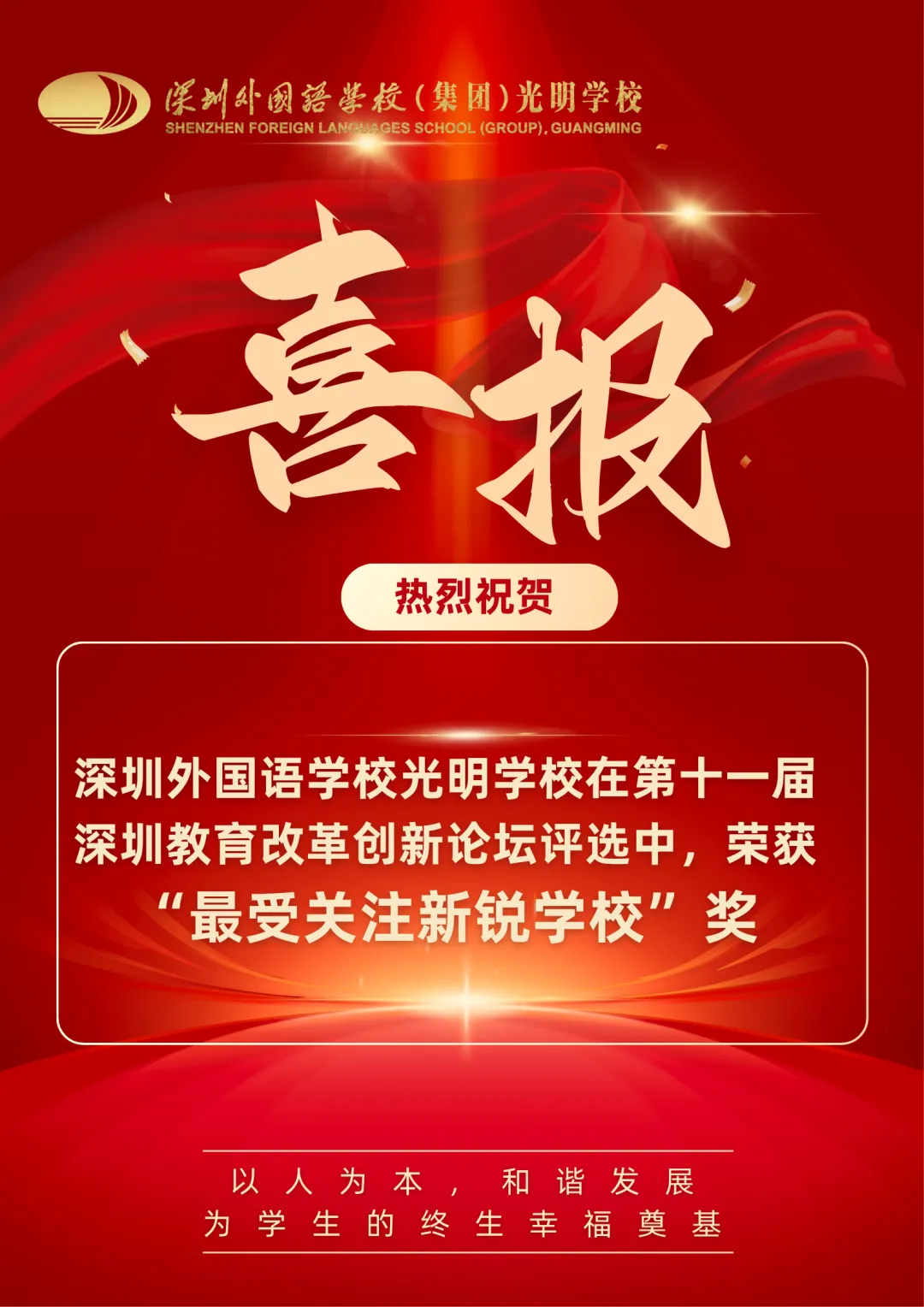 【喜报】深圳外国语学校光明学校荣获深圳教育改革创新论坛“最受关注新锐学校”奖
