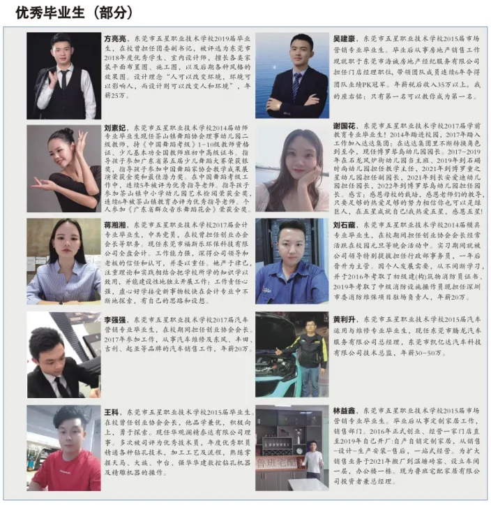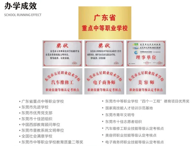 东莞市五星职业技术学校是经东莞市教育局批准成立的一所全日制、省重点中等职业学校连续三年被评为东莞市先进学校。学校位于东莞市中心区东城街道温塘育才科技园内,交通便利环境优雅,设施齐全,总占地面积约5万多平方米,总建筑面积3.5万平方米,现有在校学生2000多人。