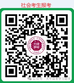 3.交报考费:通过审核的考生须在24小时内登录"深大自考"公众号,在微信推送页面依次点击“学生服务→个人中心→社会报考”或扫描报考二维码(免登录)进入系统,在缴费状态栏“缴费/详情”完成支付。缴费成功后须返回个人报考页面查看报考状态,显示“已缴费”即报考成功。逾期未完成缴费者,系统将自动取消报考资格并释放考位。