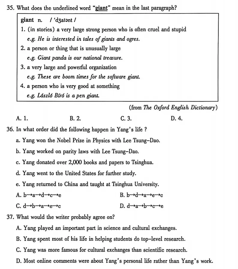 先看越秀区C篇,关于物理学家杨振宁(Yang Chen-Ning)的人物传记。