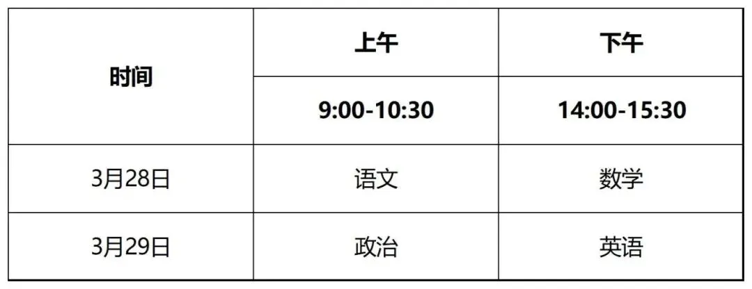 3.考生依据准考证上的考点信息于2026年3月28日、29日参加文化考试。