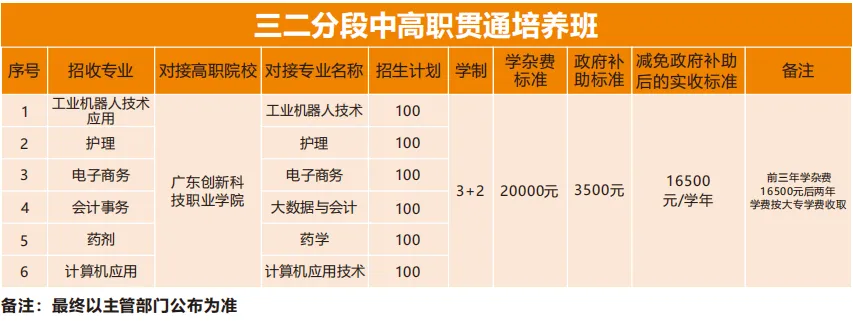 2、三二分段报名条件:当年广东省中招平台有中考成绩且不是零分的应届毕业生(具体政策以注册当年公布的政策为准)。