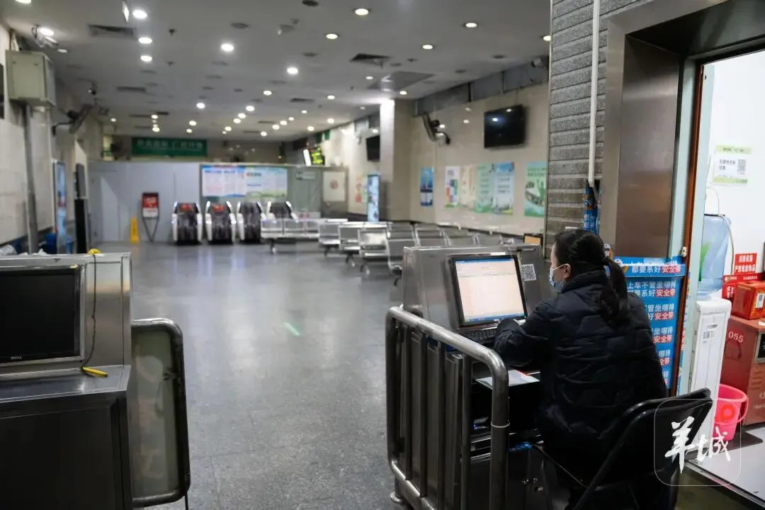 1月25日19时许,记者来到广园客运站,看到出站检查岗亭检查员张先生正在检查班车的安全情况。“我在广园客运站工作二十几年了,主要检查旅客安全,司乘是否系好安全带,看视频安全教育的情况等。”张先生回忆,以前一天客流大概几万人次,现在每天客流只有一两百人次。