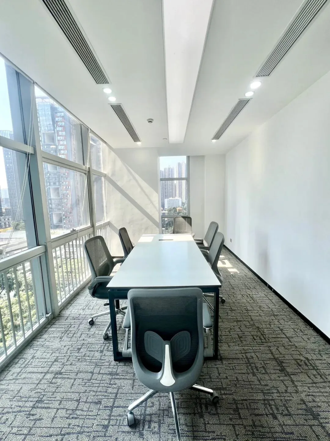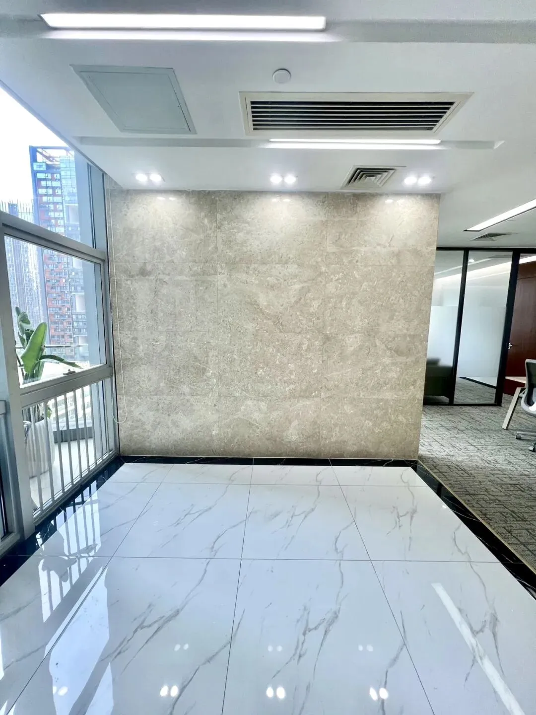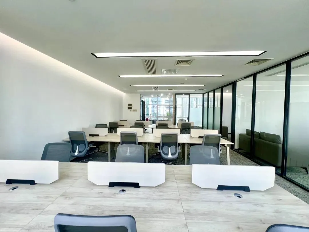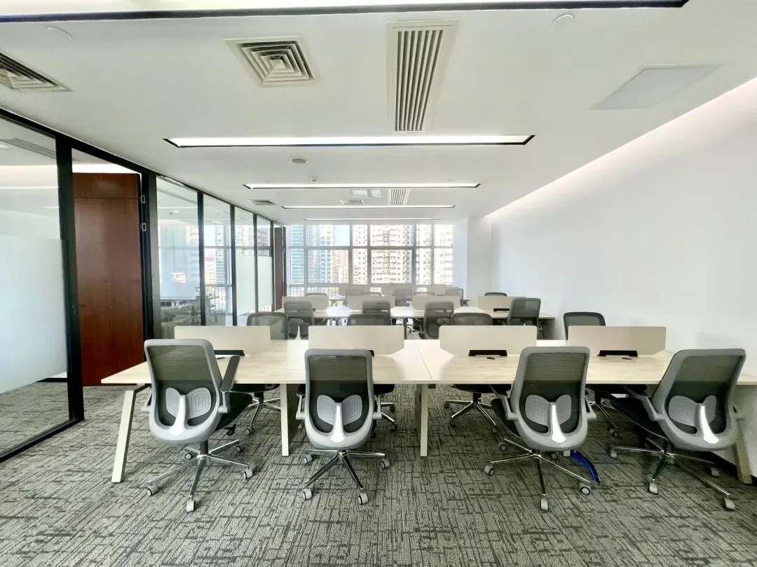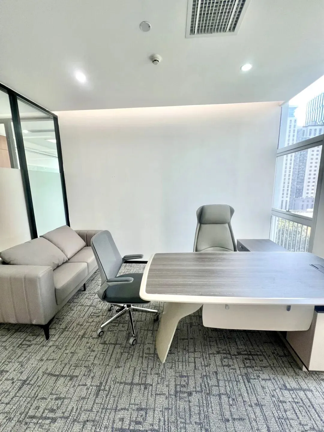 交付标准:精装交付、全落地玻璃、全套办公家私、超长中央空调时间(周一至周日早8晚7)