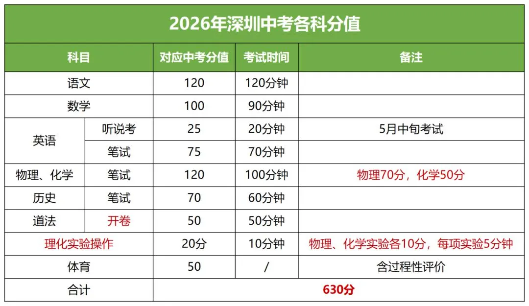 依据《深圳市教育局关于深化高中阶段学校考试招生制度改革的实施意见》,2026年起深圳中考总分由610分上调至630分,物理、化学实验操作单独计分,科目考查方式同步优化,直接重构竞争力格局,考生需提前适配科目权重变化。
