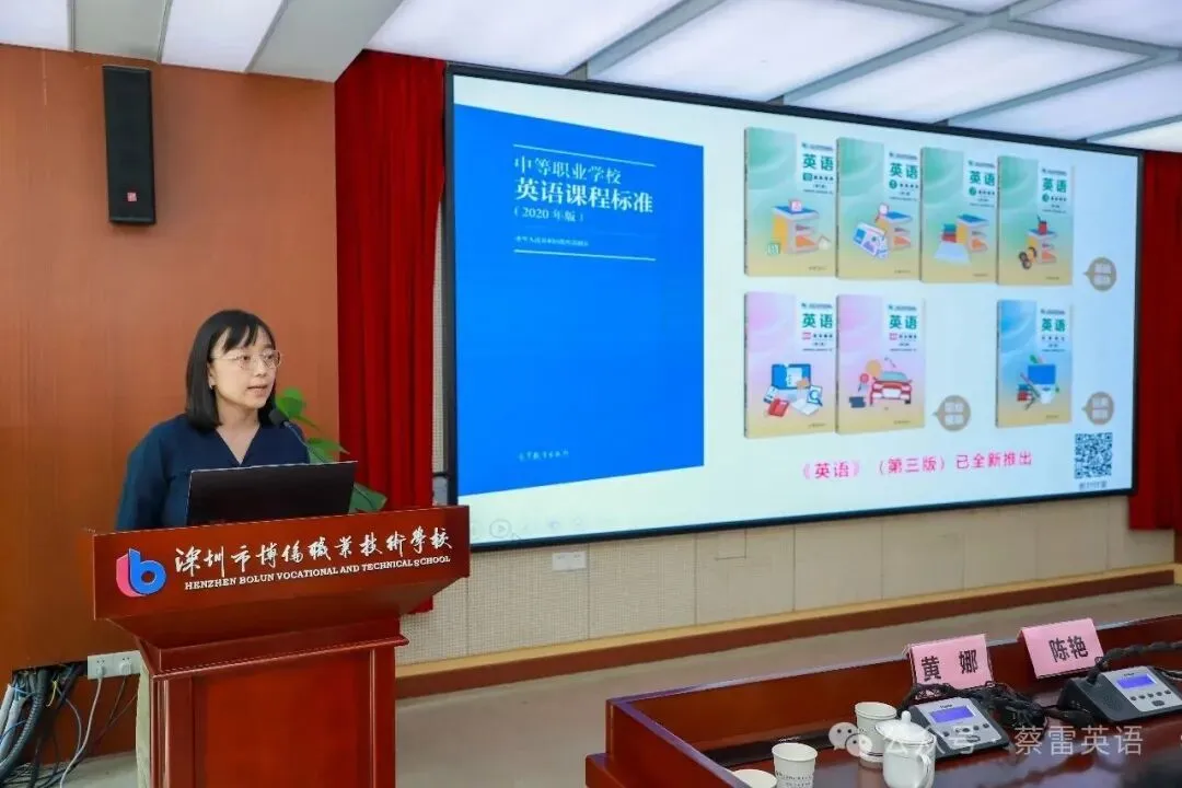 高等教育出版社首席编辑黄娜围绕《构建“教材-赛事-发展”闭环:国家规划教材赋能中职英语教师专业成长新生态》作专题分享。她详细介绍了高教社国规教材第三版的修订理念与特色,展示了教材与广东省职教高考题型的高适配度,以及教材配套的丰富资源体系。黄娜编辑还重点解读了由高教社支持或承办的三大全国性赛事——外语微课大赛、外语课程思政教学案例征集与交流活动、全国公共基础课教师教学设计与展示活动,鼓励深圳教师以教材为基、以赛事为阶,实现教学能力与专业发展的双提升。