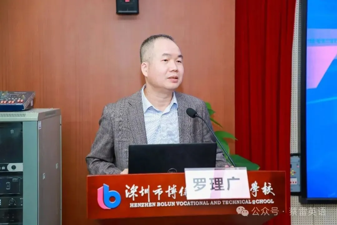 活动最后,深圳市教科院高等教育与职成教育研究中心主任罗理广作指导讲话。他高度肯定了英语专委会活跃、高效的工作,以及本次活动的丰富内容与深远意义。罗主任结合教育数字化发展趋势,对中职英语教学提出殷切期望: