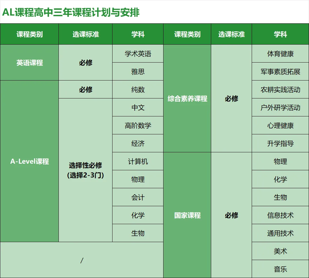 国际课程中心将根据学生的兴趣和能力,帮助其选择2-3门A-LeveI 文科或理科科目进行深入学习,并最终以扎实的学术成绩和个人陈述来支持学生申请海外大学。