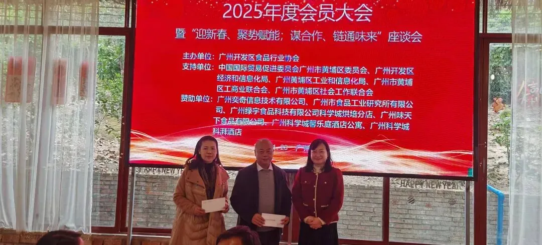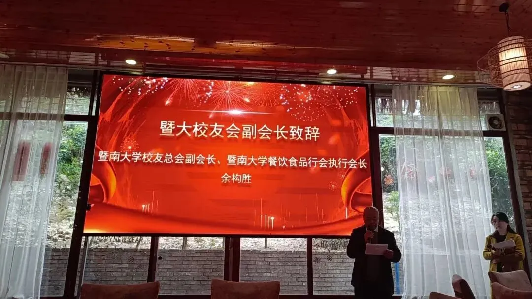 1月23日,暨南大学校友总会副会长、餐饮食品行会执行会长、饶平校友会会长余构胜校友应邀参加2025 年度广州开发区食品行业协会会员大会暨“迎新春、聚势赋能;谋合作、链通味水” 座谈会并致辞。食品行业协会新年座谈会,整个会场充盈着融洽而富有生机的气氛,谈及市场趋势、政策解读时,发言与交流始终紧扣行业动态,既体现着行业同仁的专业与务实,又洋溢着新春特有的温暖与希望。广州开发区食品行业协会是广州开发区五大支柱行业协会之一,由广州开发区内的食品企事业科研、检测、院校、食品专业社团组织等单位及食品行业从业者组成的地方性的社会团体法人组织。