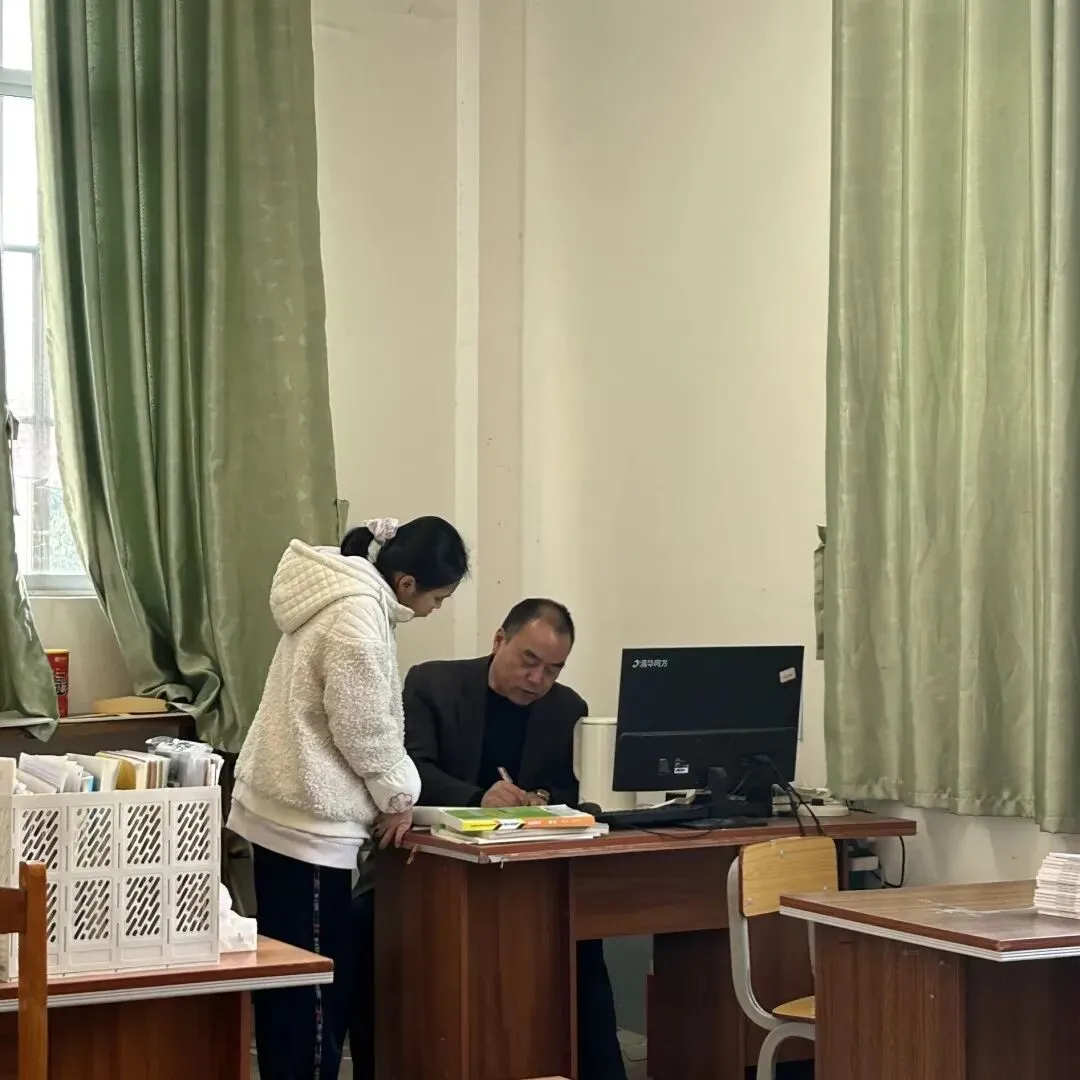 心系田高学子成长,是谢吉祥老师支教工作的核心底色。他积极参与班级会诊,与班主任、各科教师共同研判学情,精准把握不同学生的学习短板与发展潜力;每次考试结束后,他都会主动与学生一对一交流,细致分析试卷得失、梳理知识漏洞,为学生量身定制个性化学习提升方案;在课间,面对学生在数学学习中遇到的难题,他始终保持耐心,用通俗的讲解和清晰的思路帮助学生攻克难关,让学生重新燃起对数学学习的兴趣与信心。