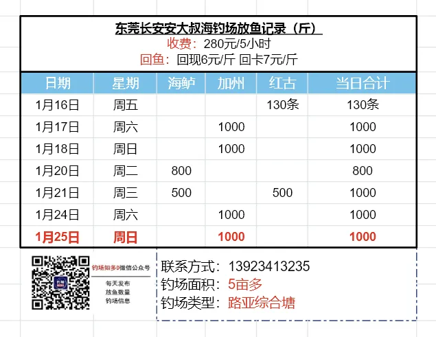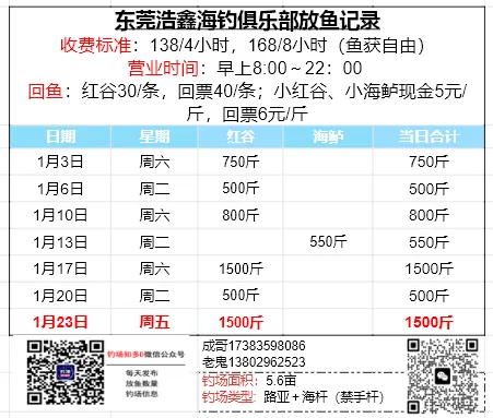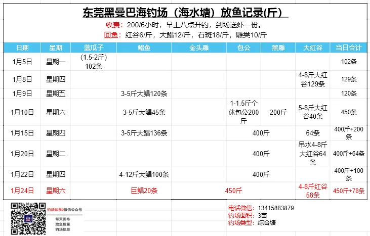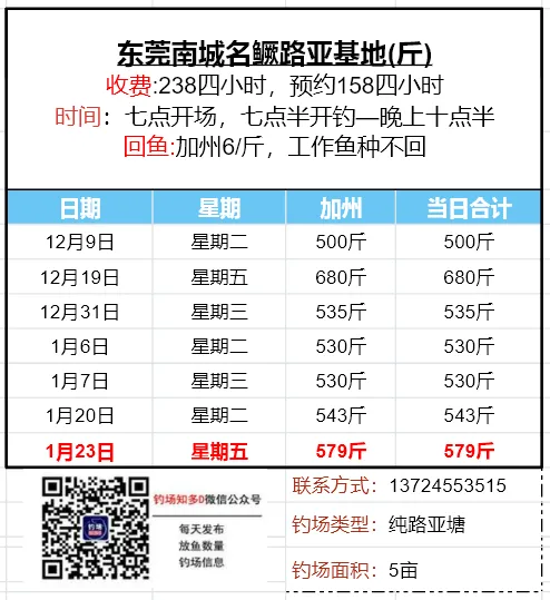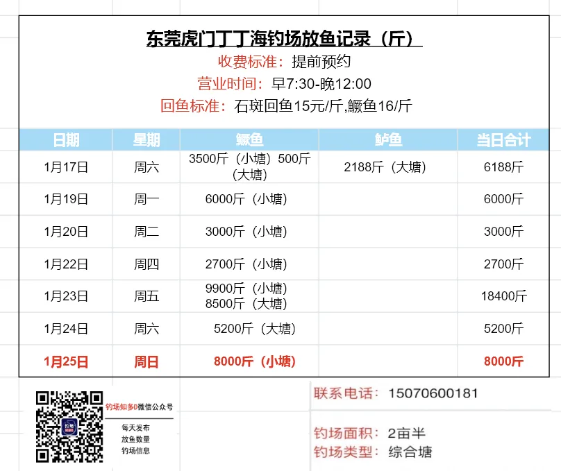 本文收录东莞地区比较知名和靠谱的钓场放鱼数据,