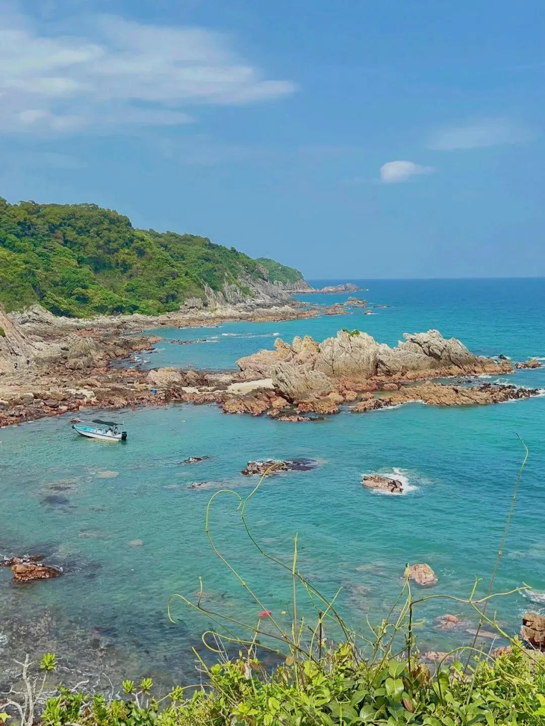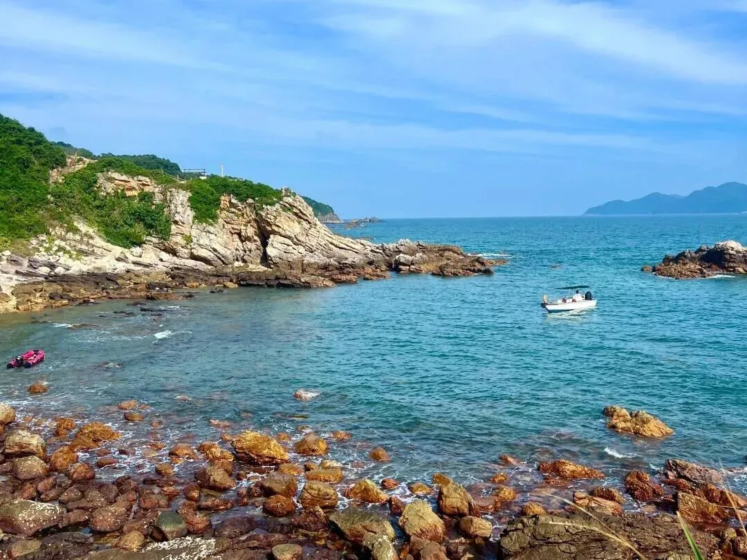 穿行在礁石与沙滩的交界处,裤脚沾了细碎的沙粒,指尖触到微凉的岩壁,远处的渔船在波光里摇晃,这是城市里难得的松弛感。