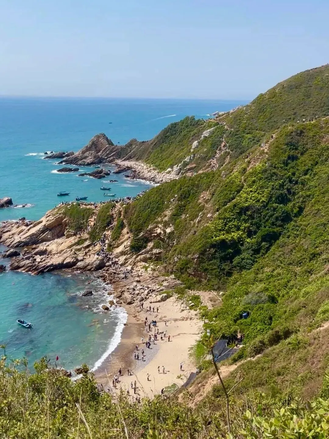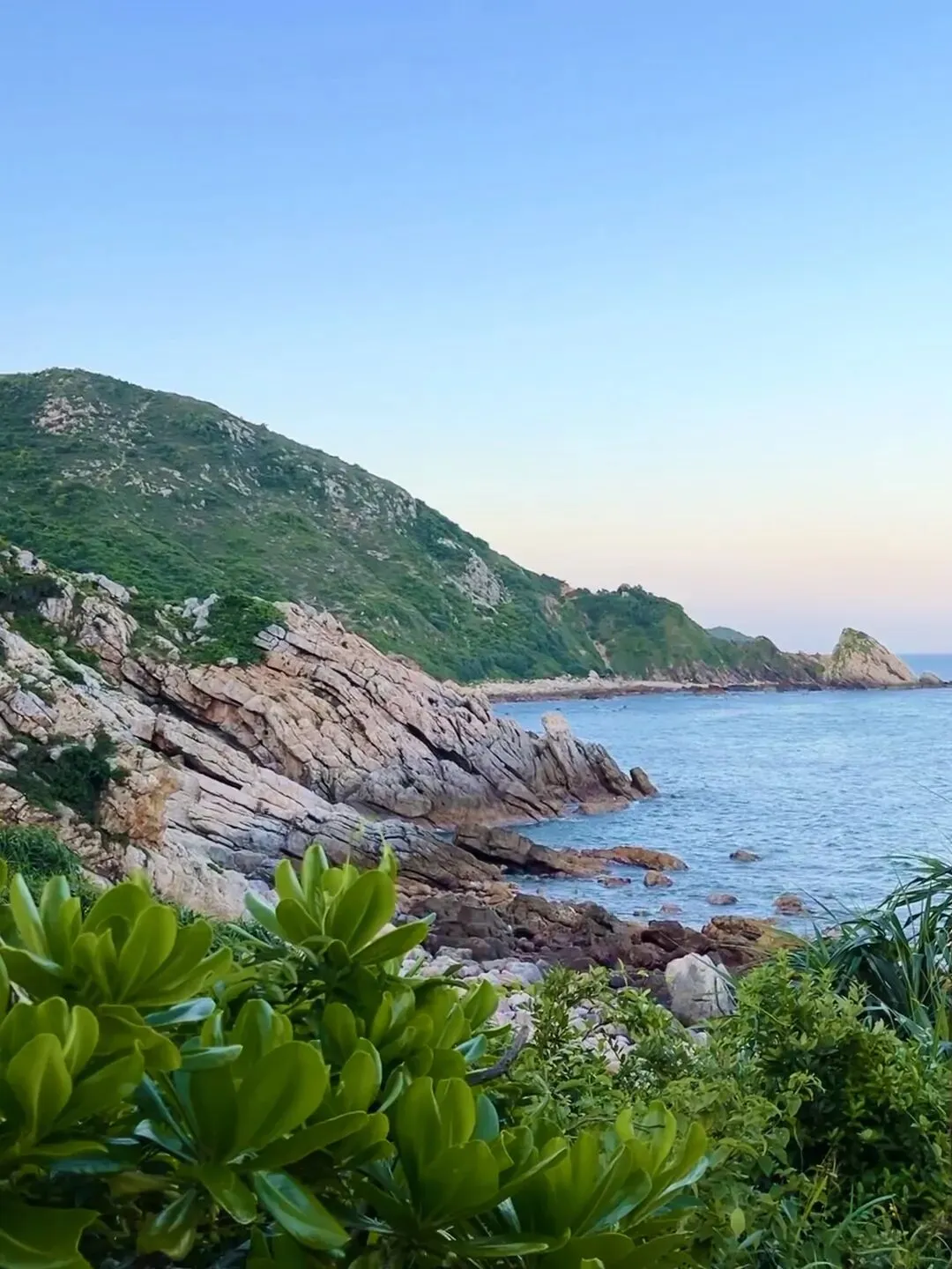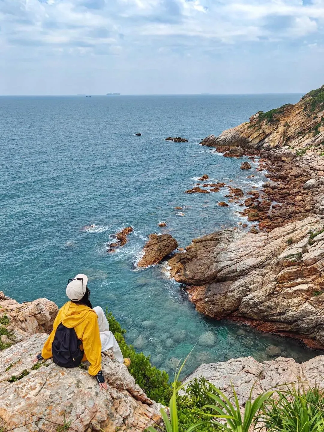 爬过陡峭的礁石坡,转头撞见蔚蓝的海平面铺展开来,白色的浪花一遍遍亲吻海岸,连汗水都带着海风的清甜。
