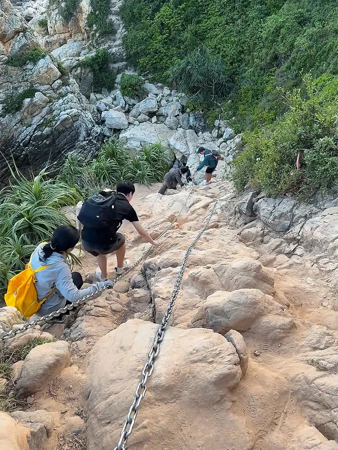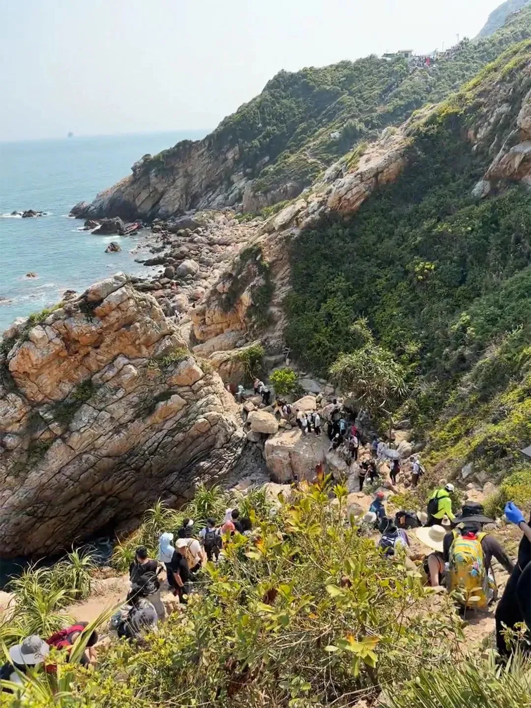 13:00 沿海岸线攀越山崖、踏过礁石,向西冲挺进(中途可坐快艇到西冲,费用自付 )徒步人多的时候可能会比较缓慢,大家要注意安全并礼让,团友们之间尽可能互相帮忙度过攀登的难点。