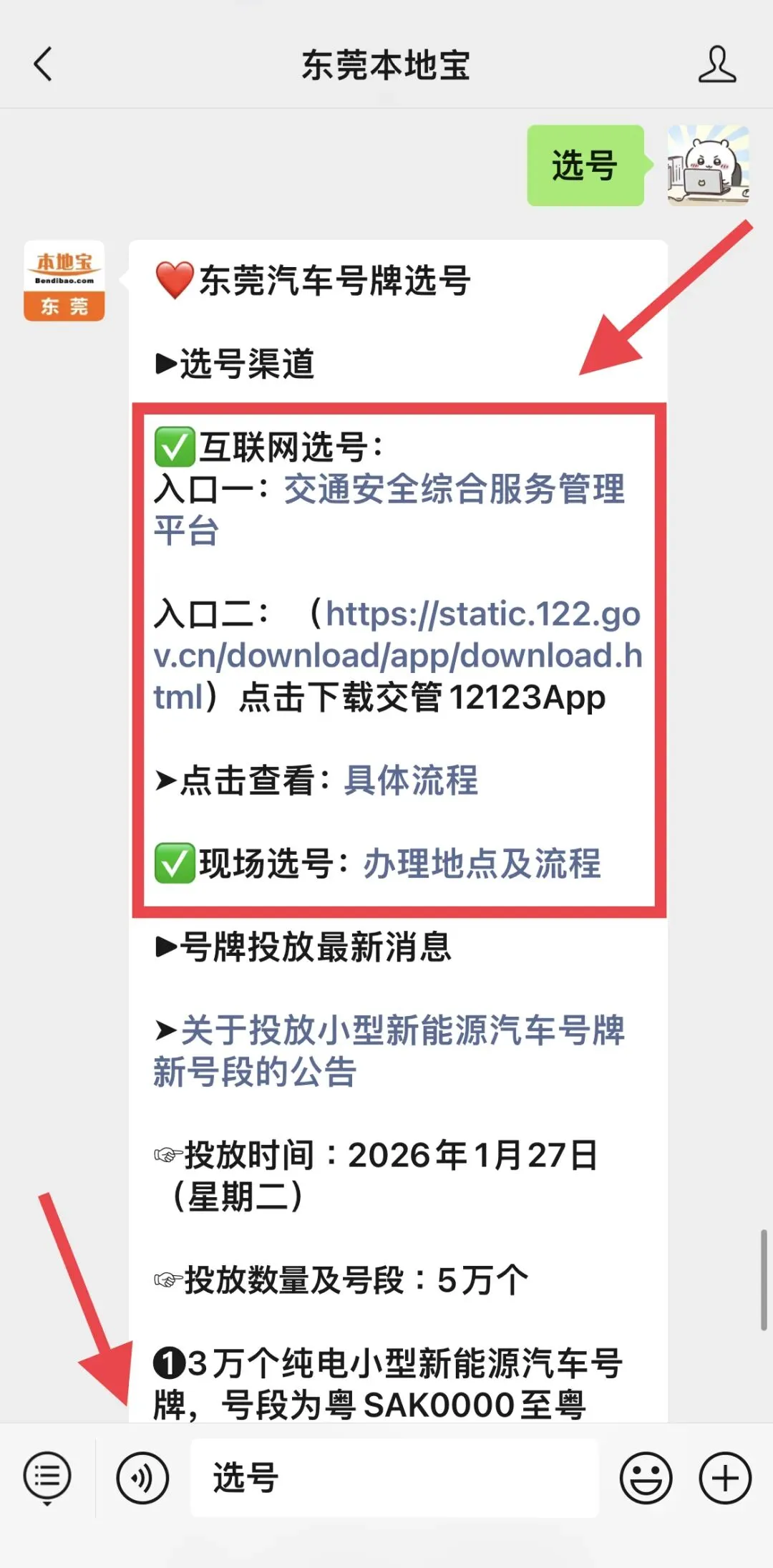😘小编提醒:长按识别下方二维码关注东莞本地宝,在聊天对话框回复【选号】,即可获取选号入口+指南!
