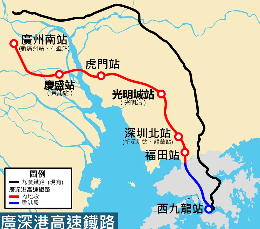 深圳北站、福田站均有直达香港西九龙站的高铁。
