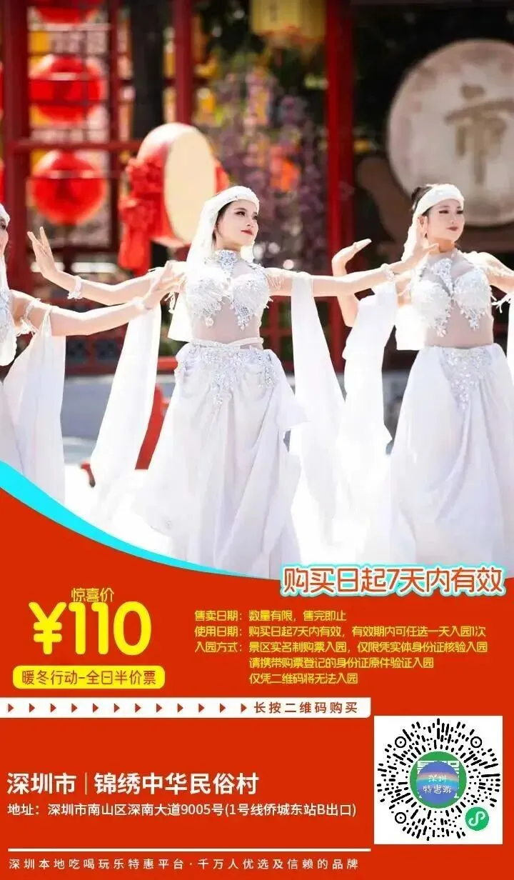 『暖冬行动-全日半价票』惊喜上线!20:15前可订当天!仅110元抢锦绣中华民俗村门票,一天带你畅游祖国的大好河山、感受各地丰富的习俗文化、尽情体验民族风情!