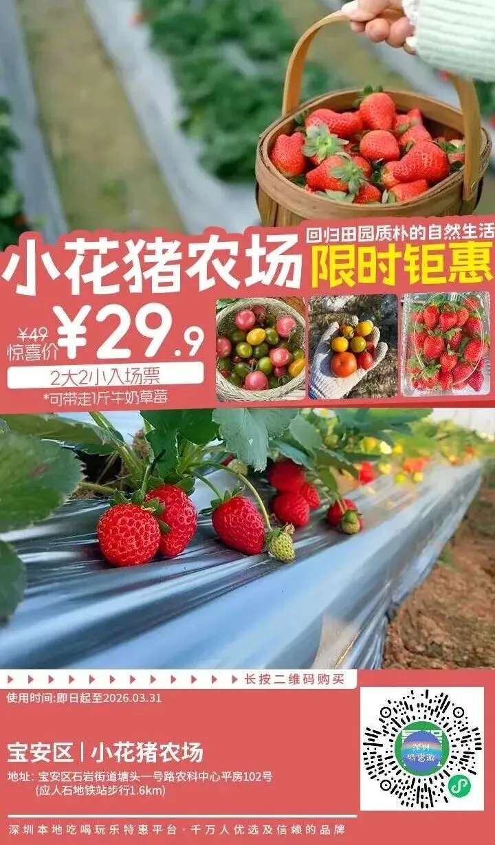 特惠上新!宝安石岩应人石新鲜草莓采摘~29.9元可享两大两小入场+带走一斤牛奶草莓!