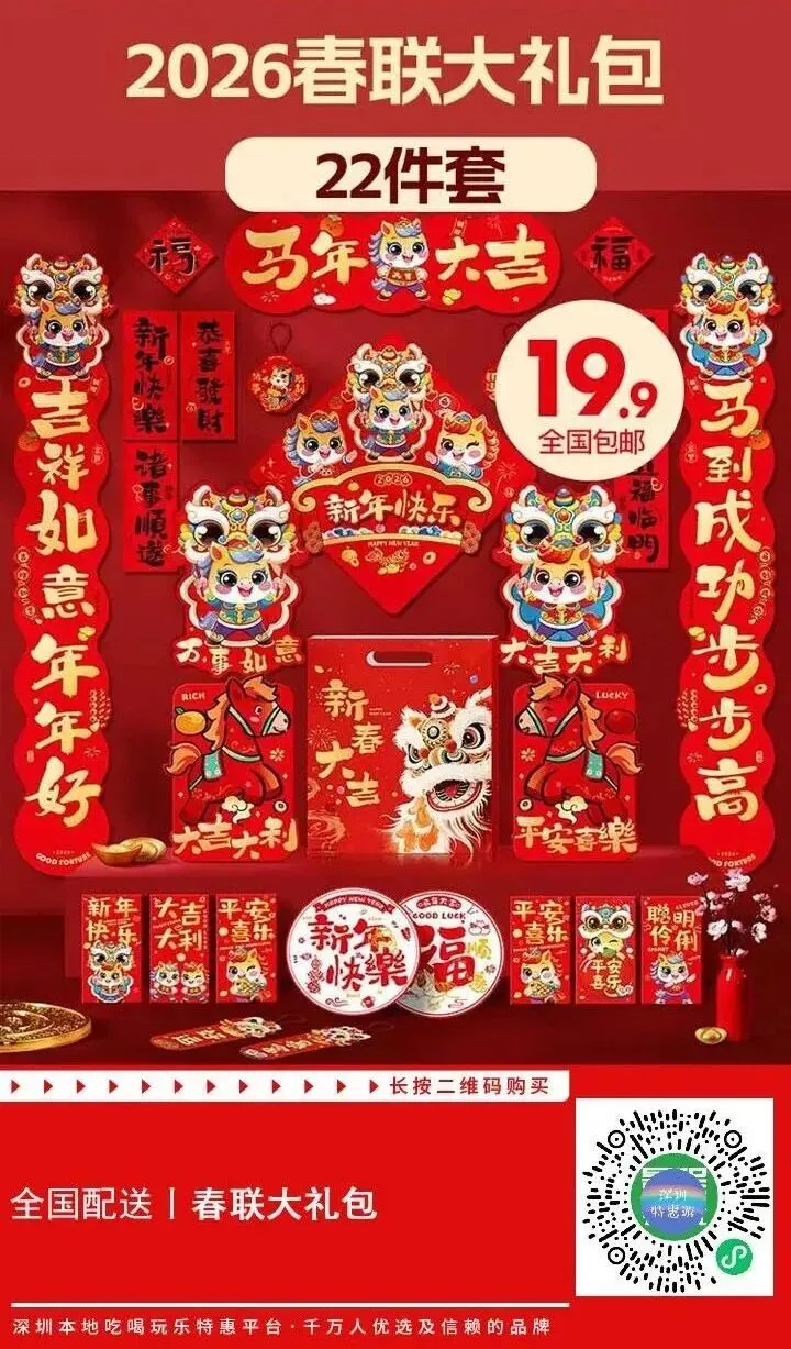 19.9元抢22件套对联!春联2026马年对联大礼包 新年元旦福字贴过年装饰 大门布置新年对联套装