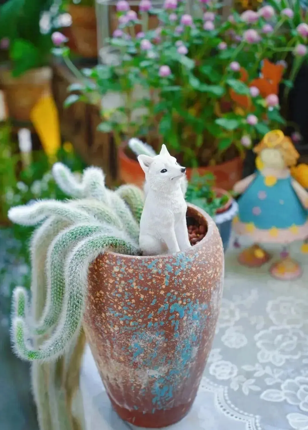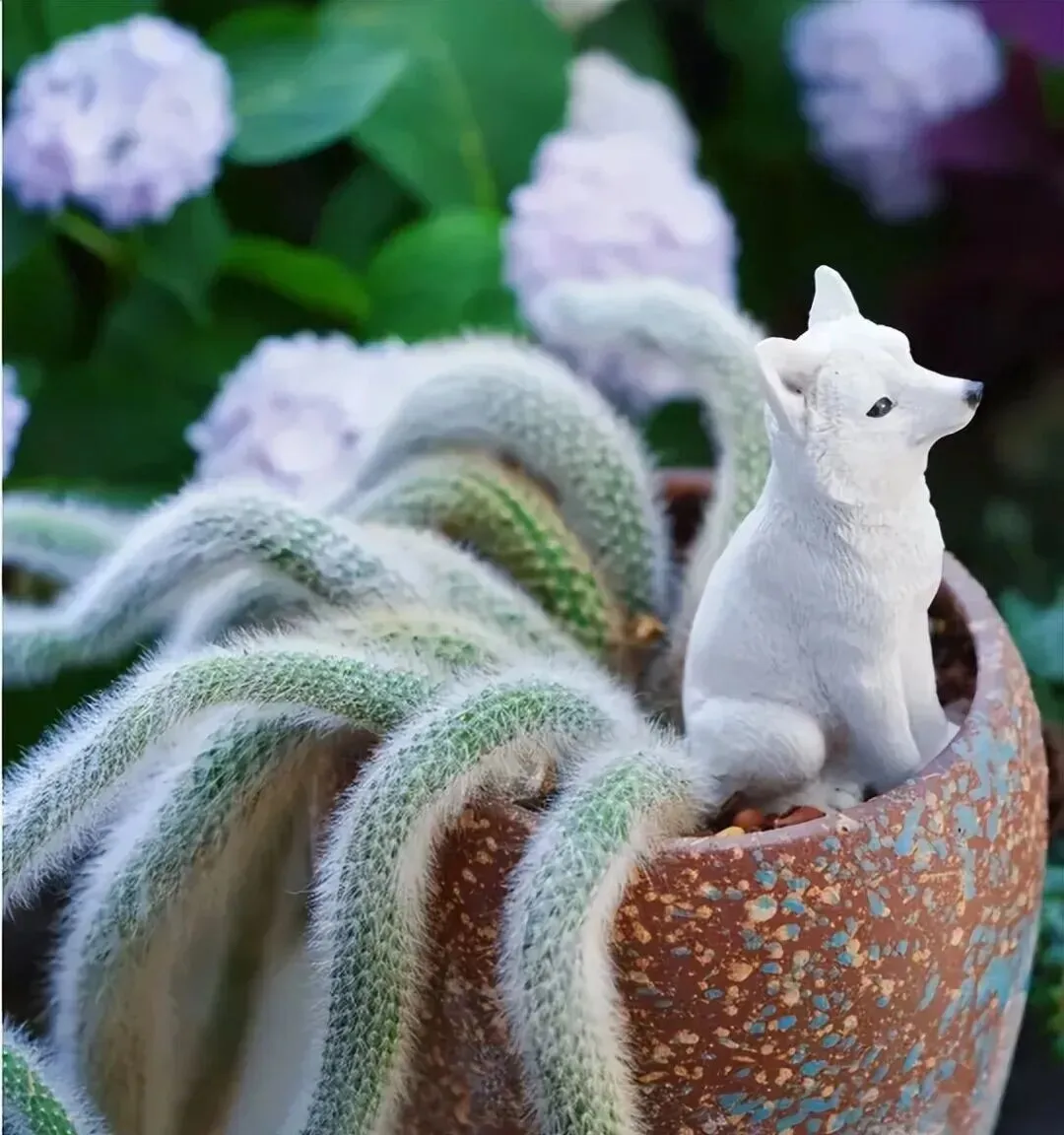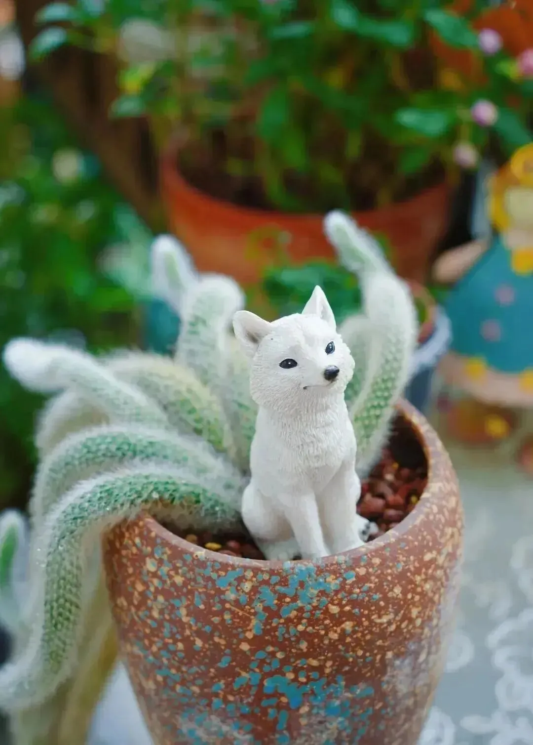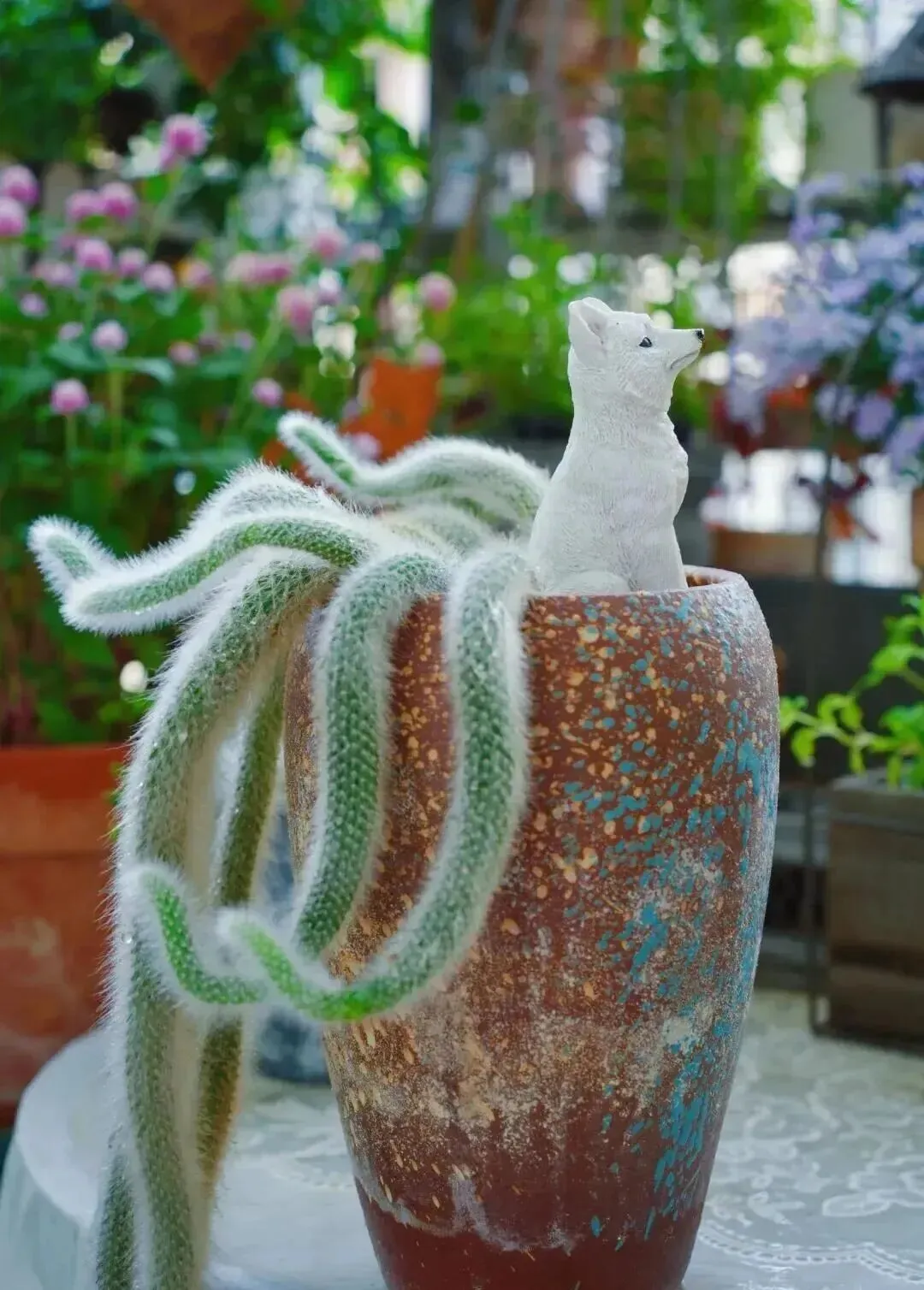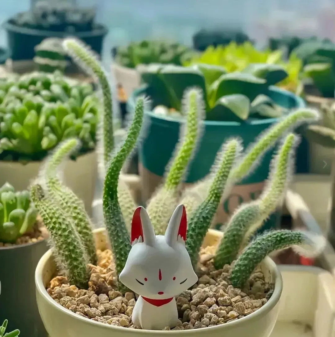 很多人养它 , 会往盆里放个小狐狸摆件 , 凑成"九尾狐"的造型 , 挺有意思的。
