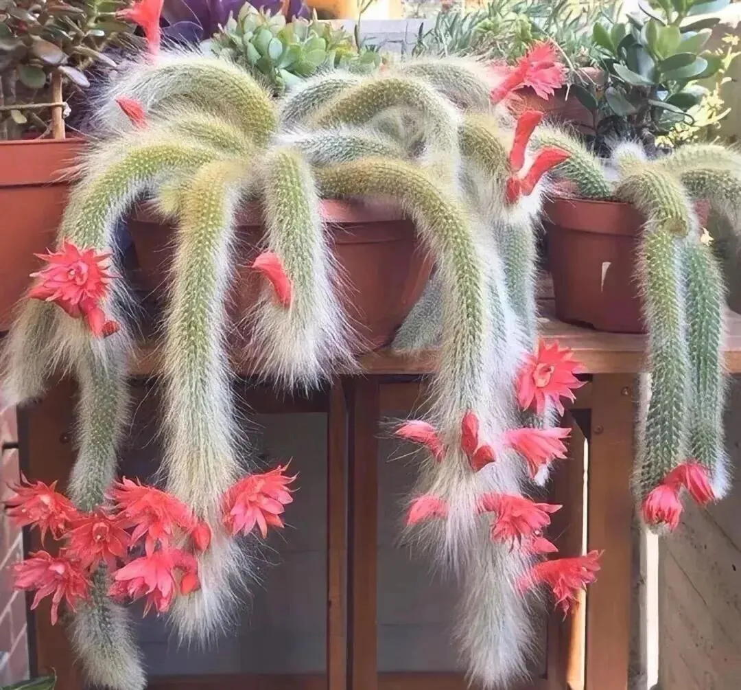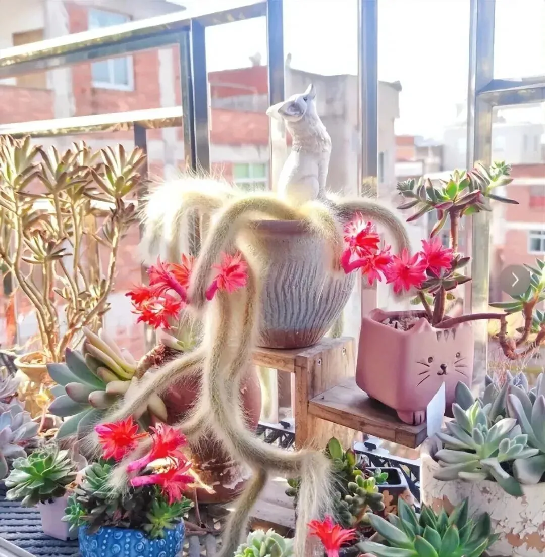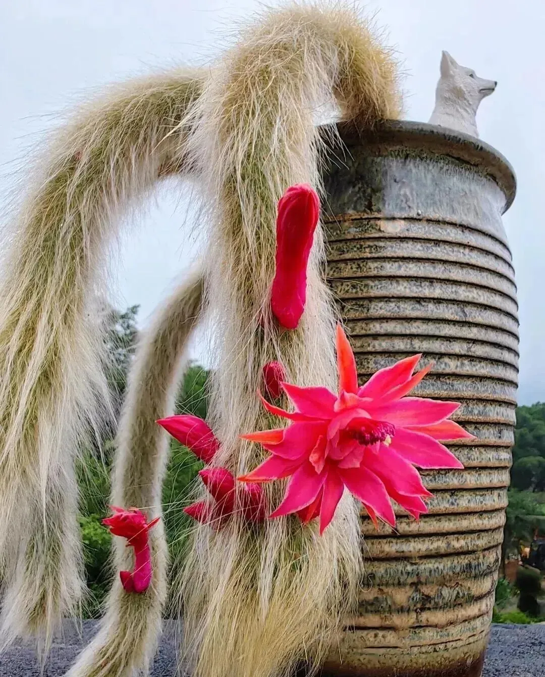 花期在夏秋两季 , 柱体上会冒出红色的小花 , 特别精致 , 仙气飘飘的那种。