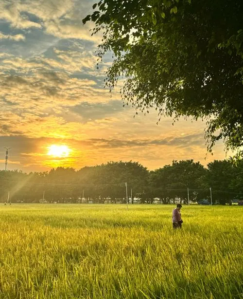 具体位置其实不难找,地铁三号线坐到番禺广场或者市桥站,再转公交或者骑个共享单车,十几分钟就能到那些还在种水稻的地方,或者四号线南延段那几个站点,出站走一走也能看到,这些地方不是什么官方规划的景点,就是当地人的农田,只不过因为位置刚好,每年收割前那段时间,稻子黄了,日落的光打上去特别透,拍出来的照片就成了网上说的那种"天花板级别"。