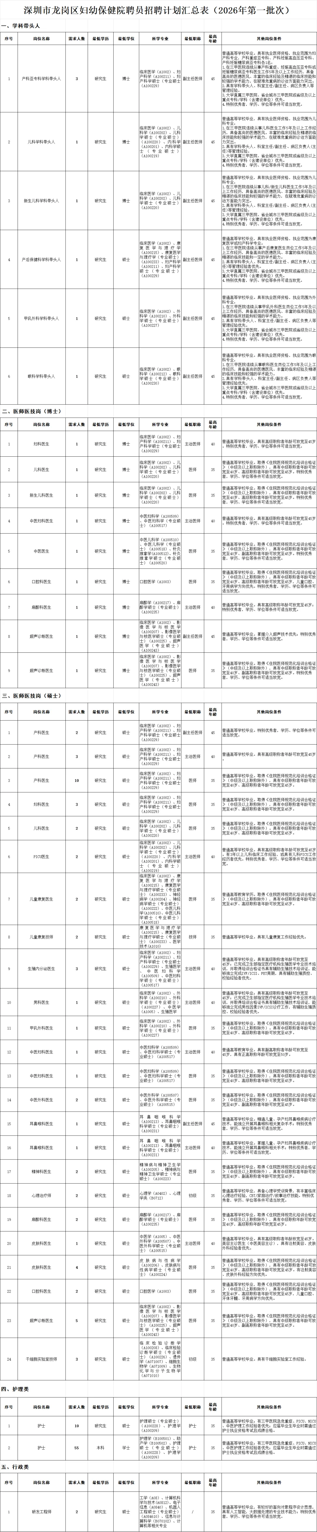 附件:深圳市龙岗区妇幼保健院招聘计划汇总表(2026年第一批次)