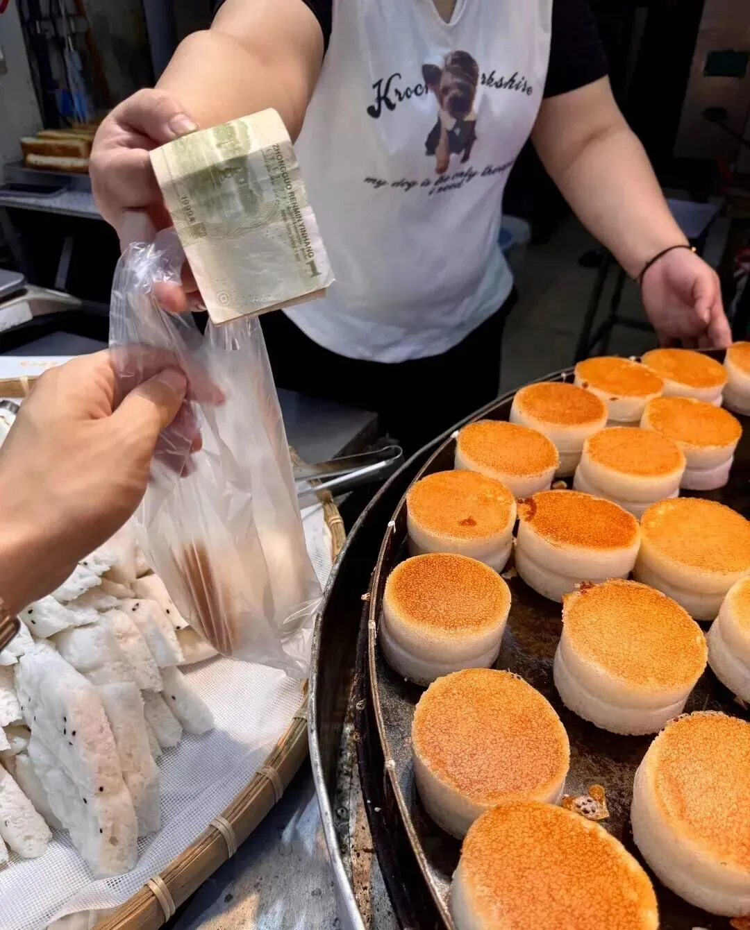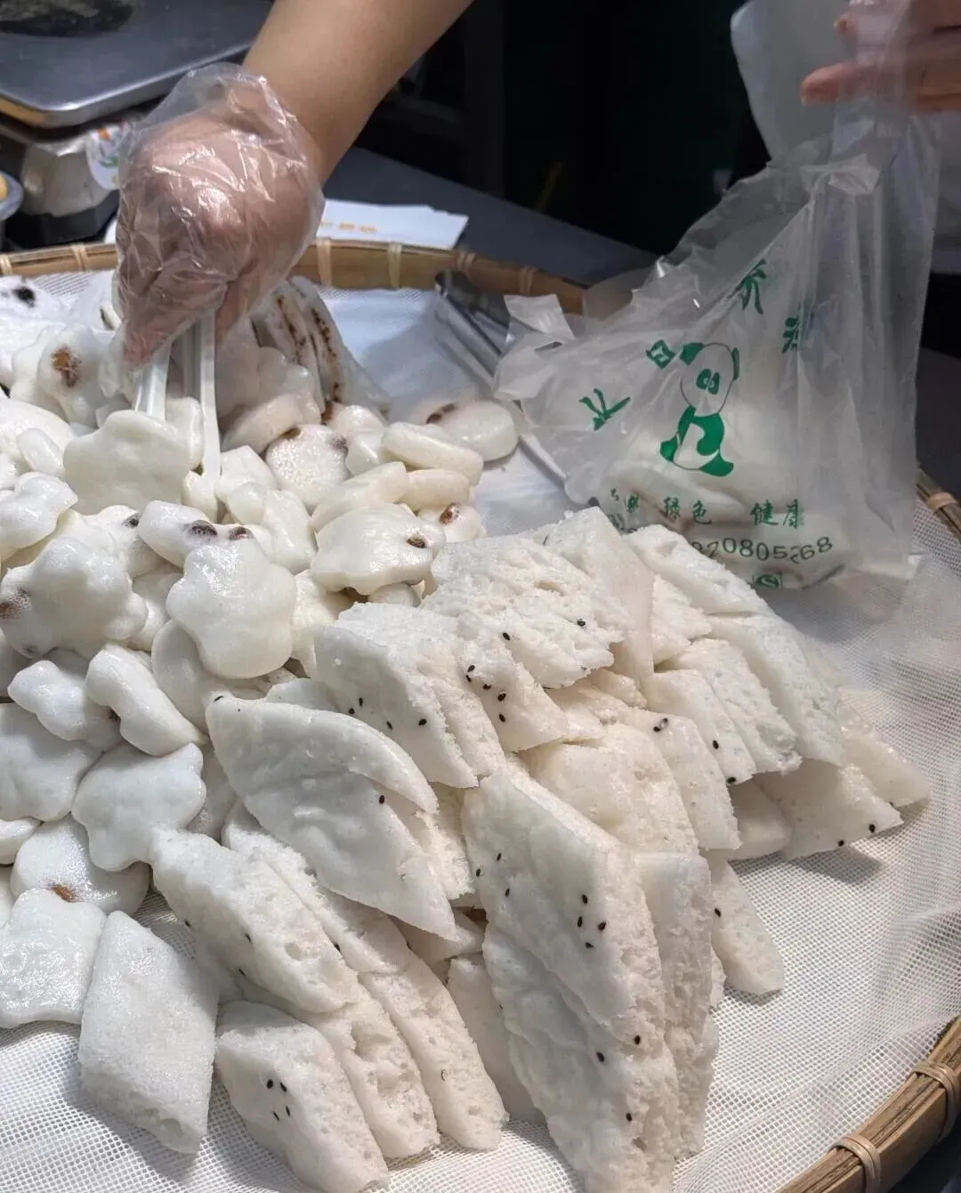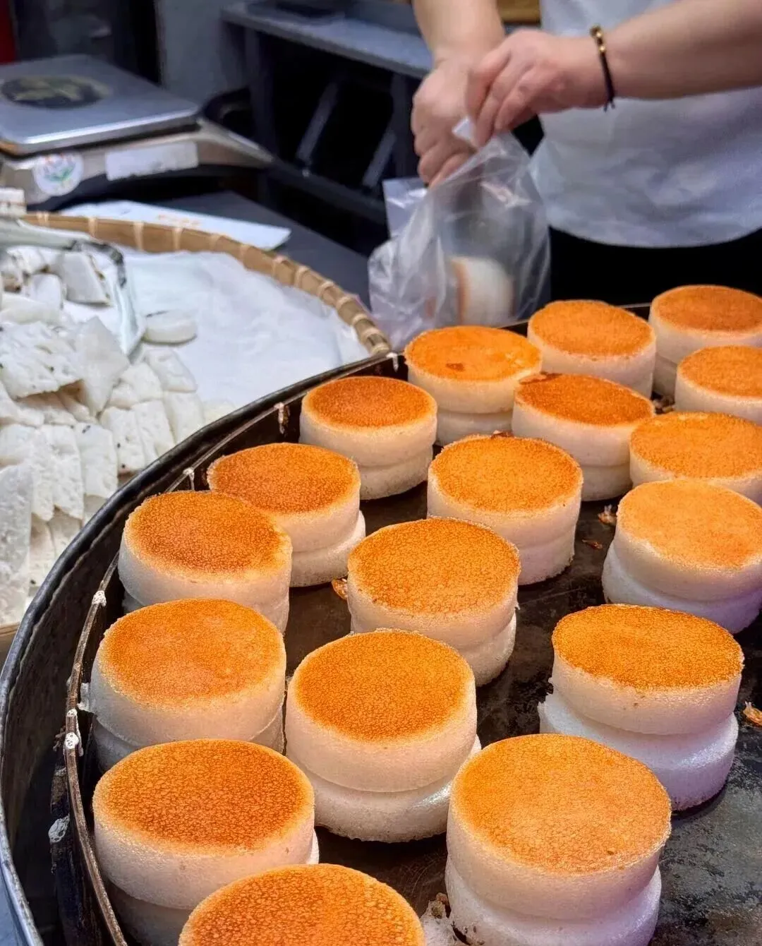 还有一种白色的 , 看着像广东的发糕 , 但又不太一样。