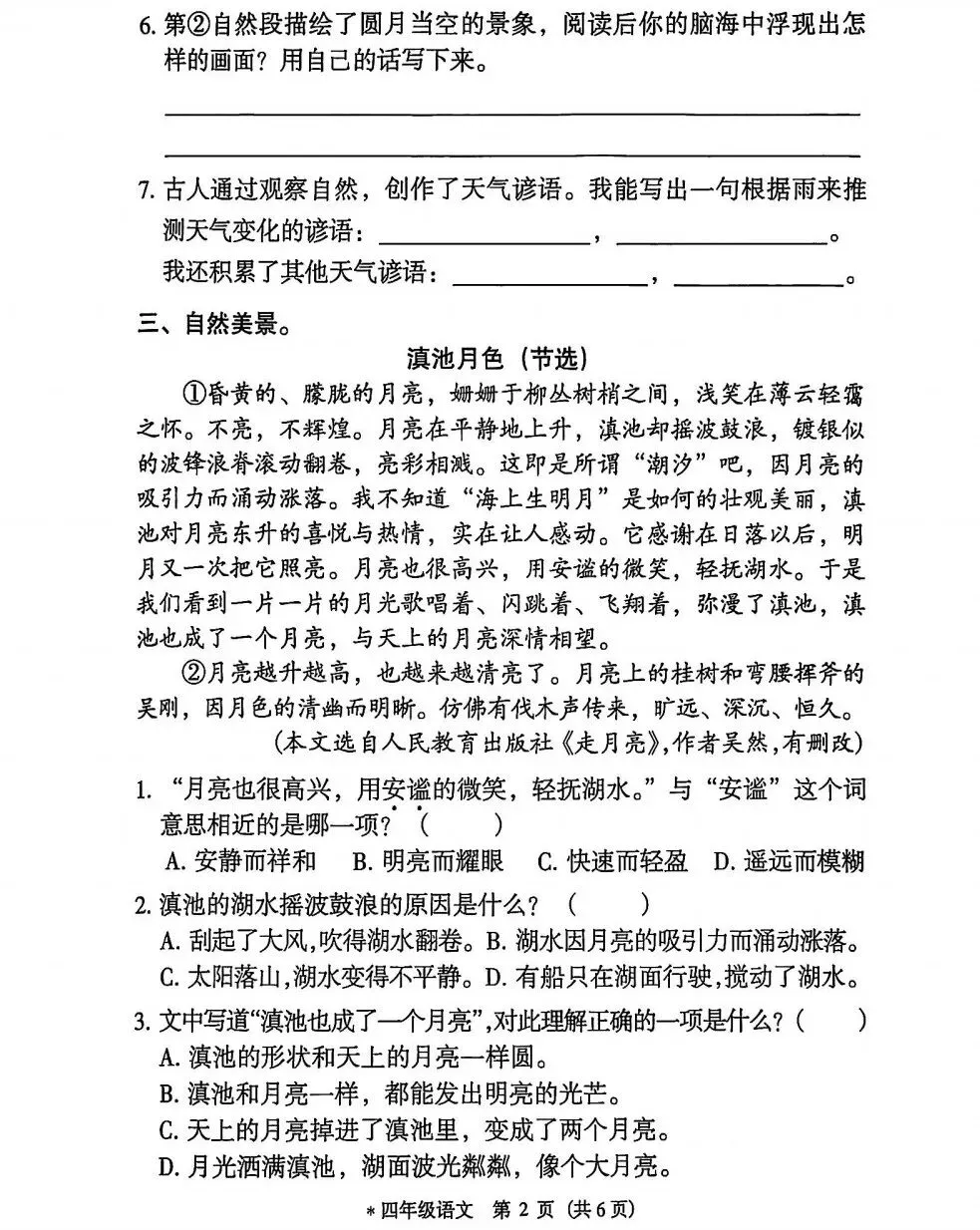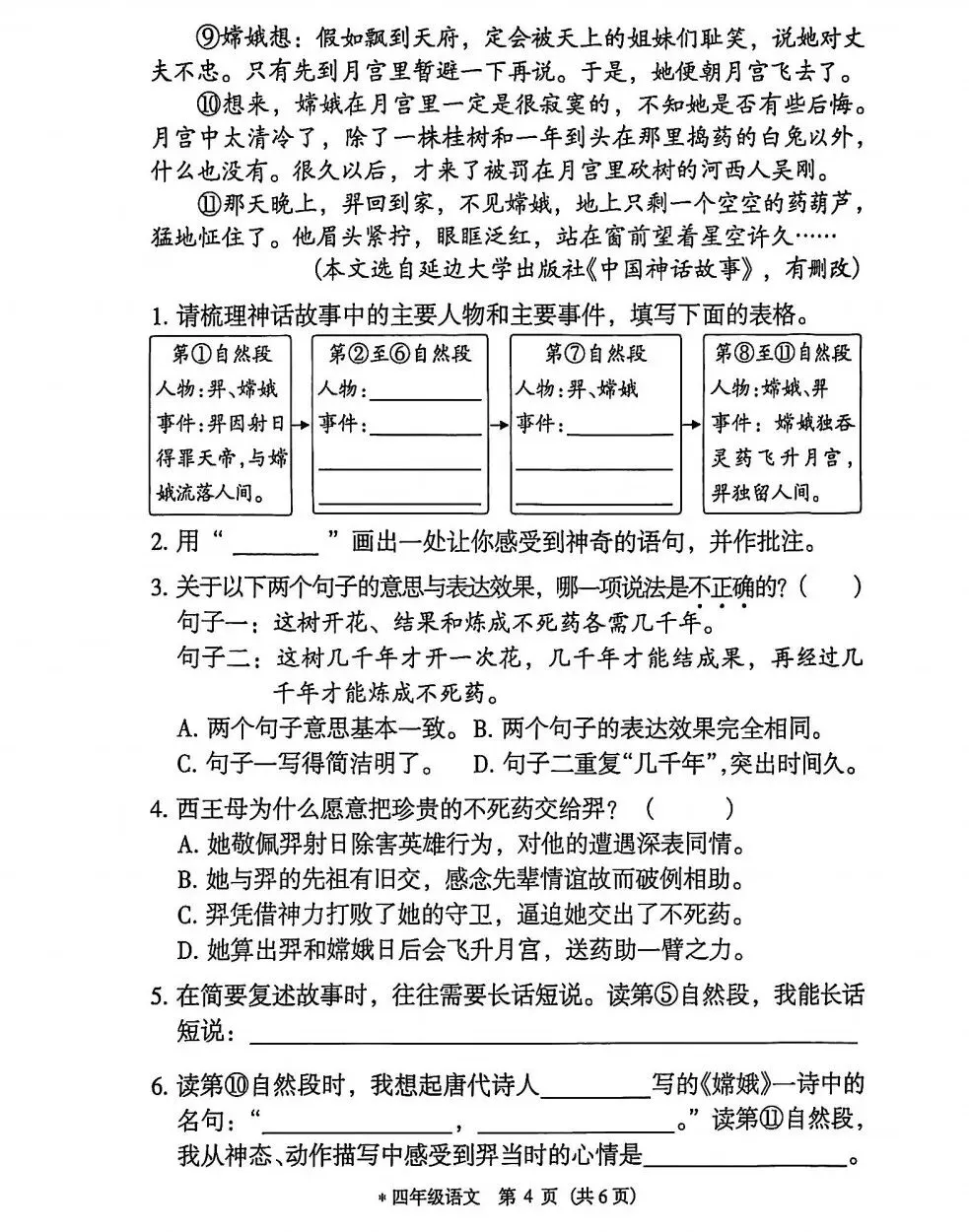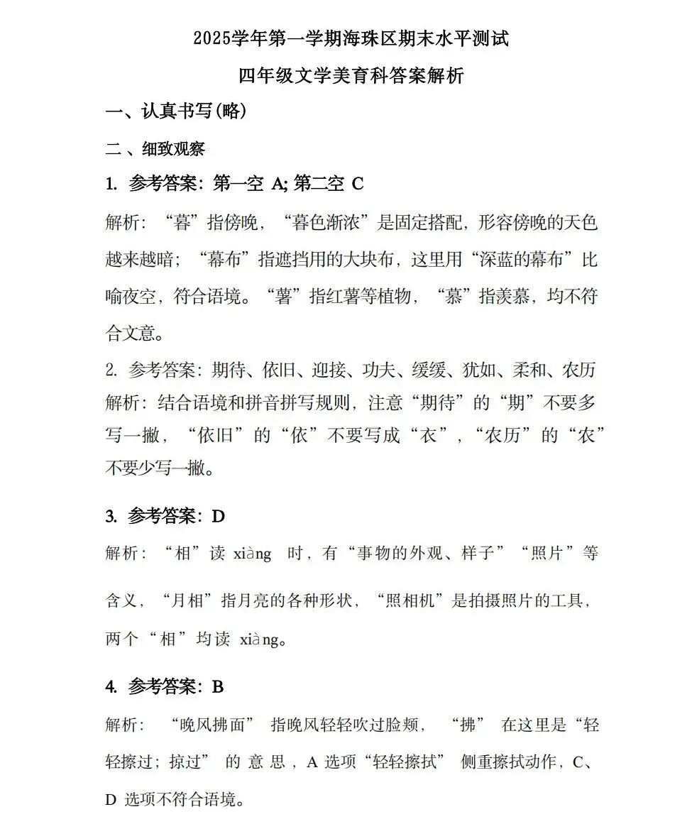 广州市海珠区2025-2026学年上学期四年级期末考试语文试题和答案