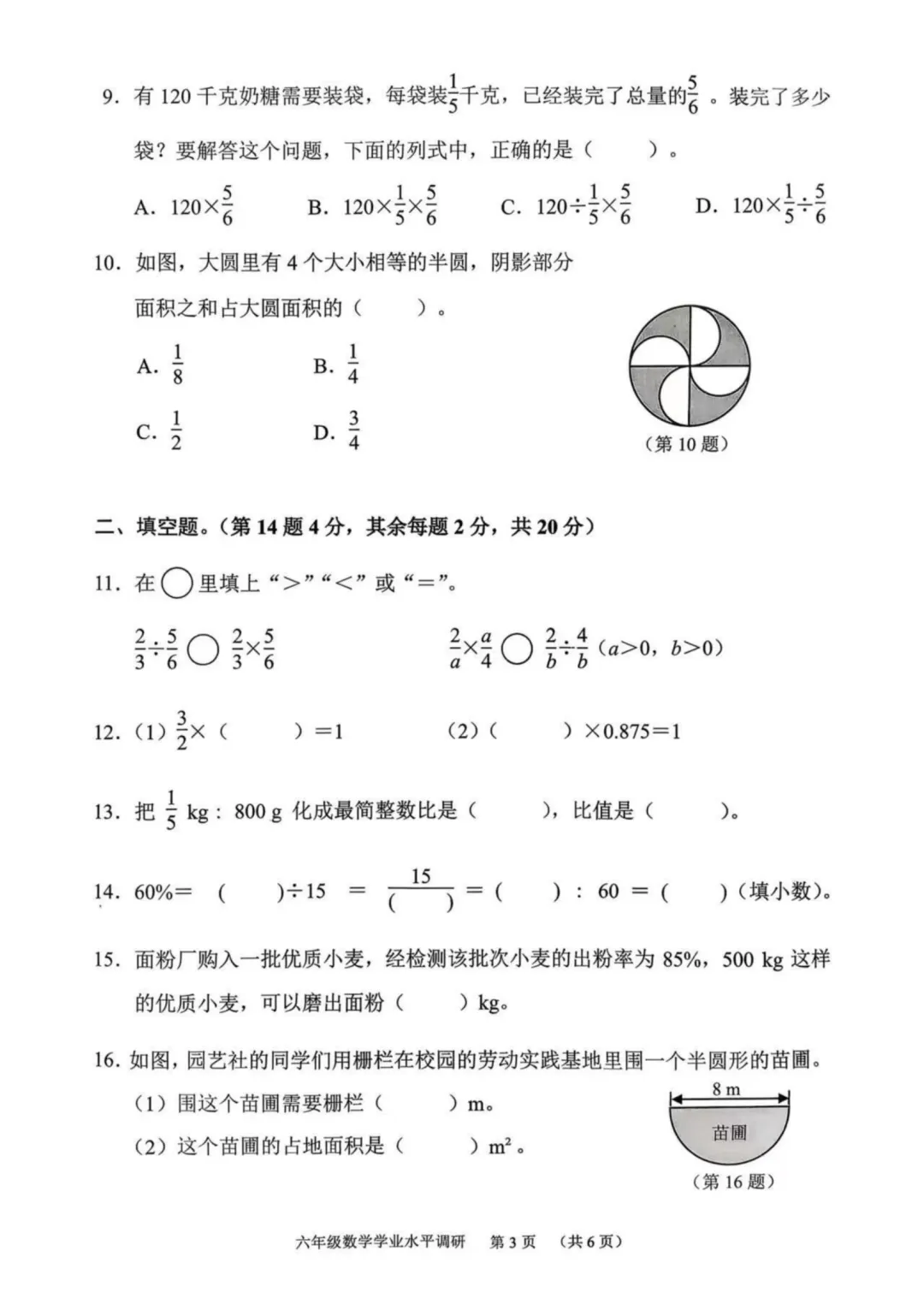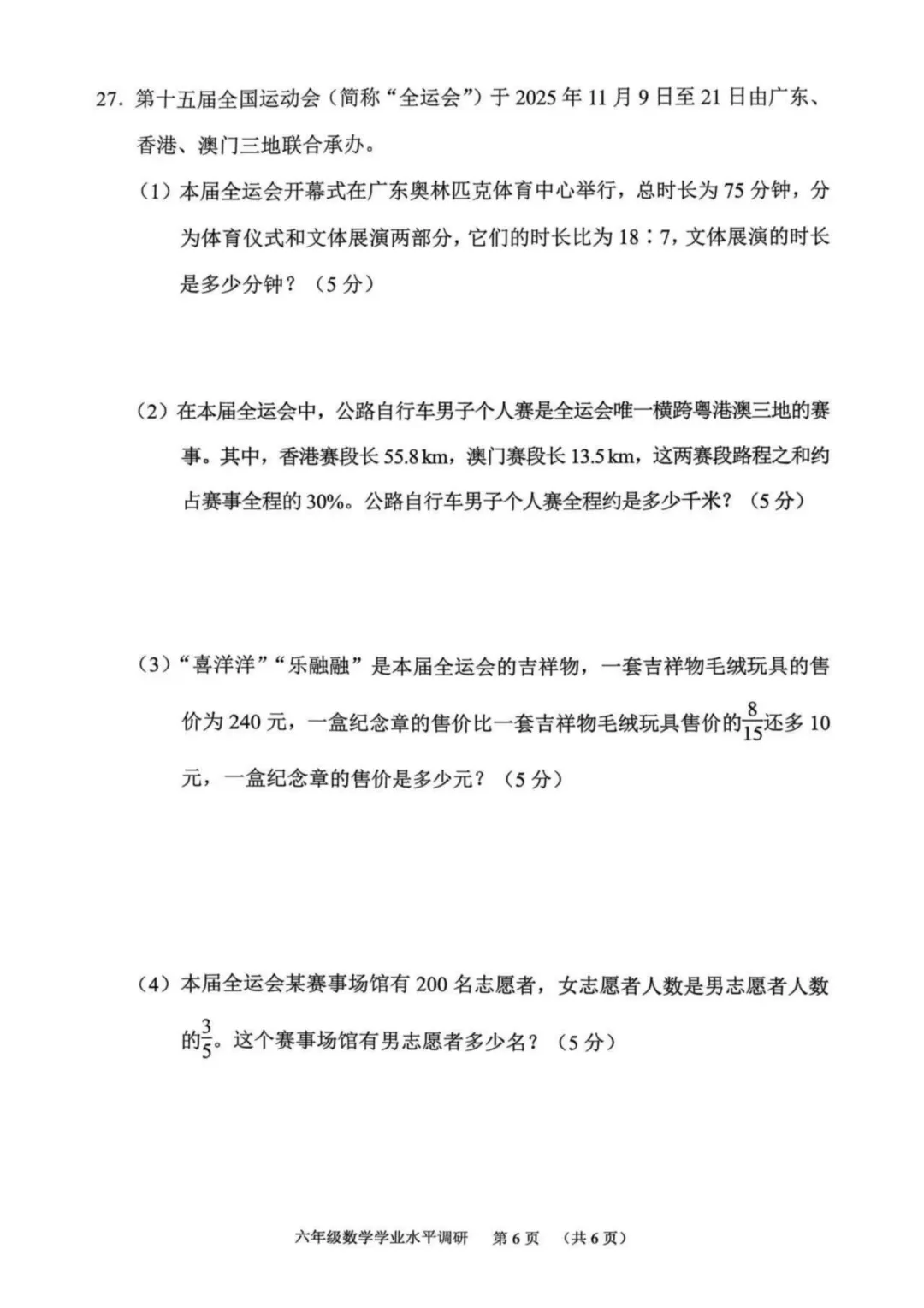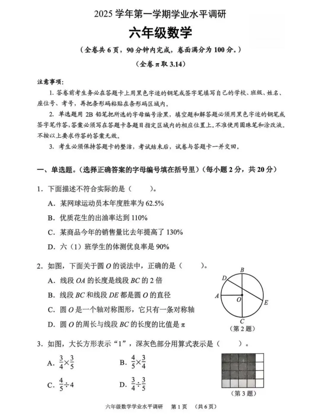 >广州市天河区2025-2026学年上学期六年级期末考试数学试题