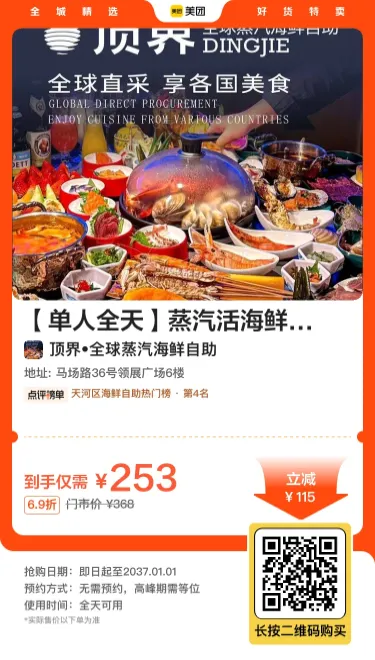 >【广州】顶界•全球蒸汽海鲜自助『253单人自助』