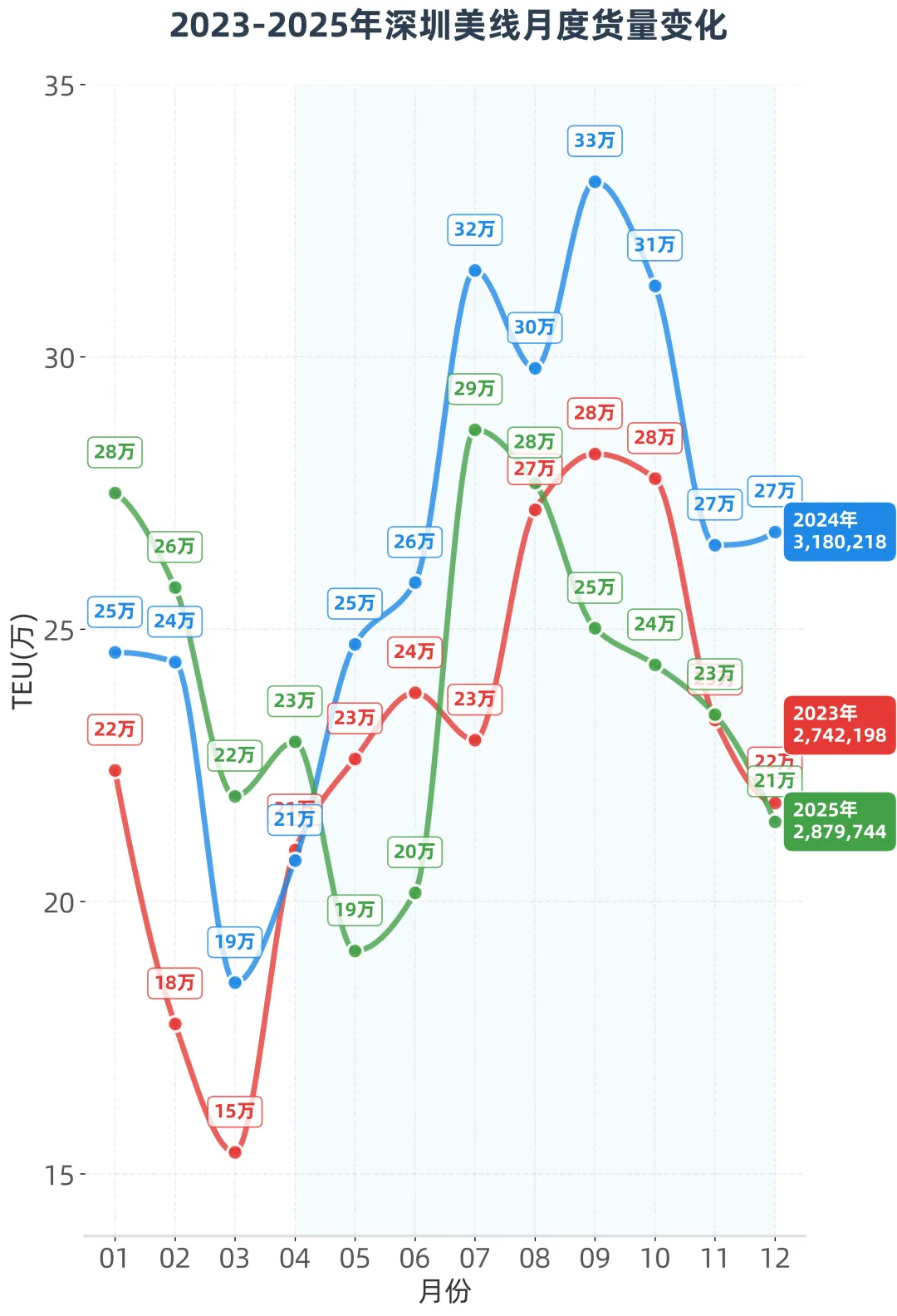 欧美与港台货代“双巨头”贡献超六成货量,2024Q3达峰值(欧美12万TEU,港台11万TEU),构成深圳港的“基本盘”
