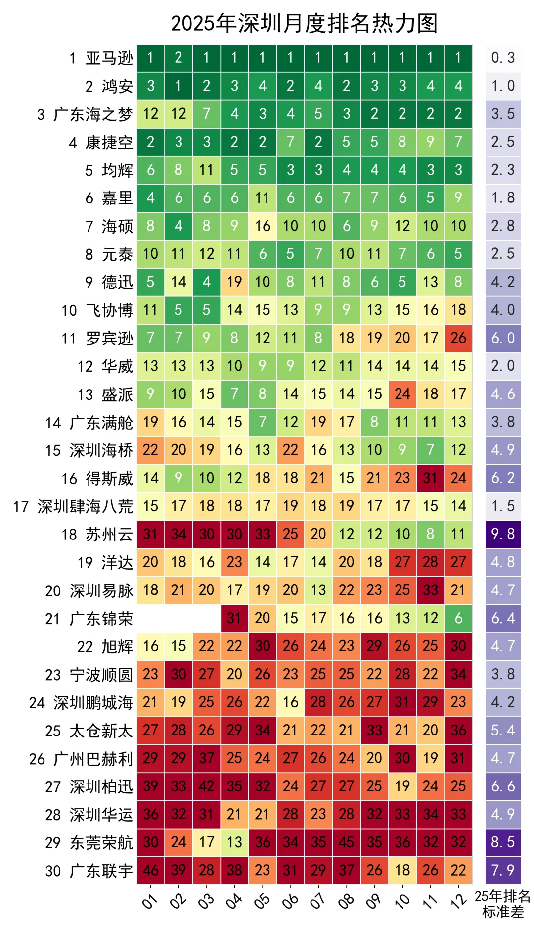 🔹 2025年整体市场呈现“头部承压、中腰部分化、尾部爆发”的典型结构,前10名除了海之梦和均辉以外,普遍负增长