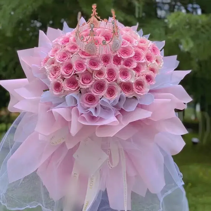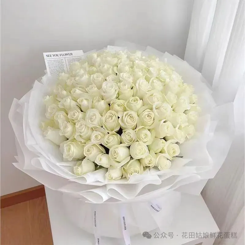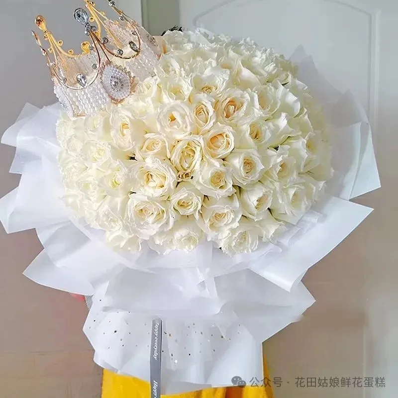花 材:99朵精品白玫瑰,搭配皇冠装饰。