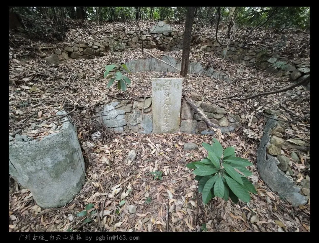 墓葬四周山界情况未明,月池占地甚广。右侧挂榜附葬“茂顯何公之墓”,环垄入口处砌圆柱。墓碑框花岗岩材质,墓碑花岗岩材质,刻“普碧何公墓”,沒有上下款。墓后两级护岭,一级护岭正中放置简易石额,右后立“何府后土”碑。