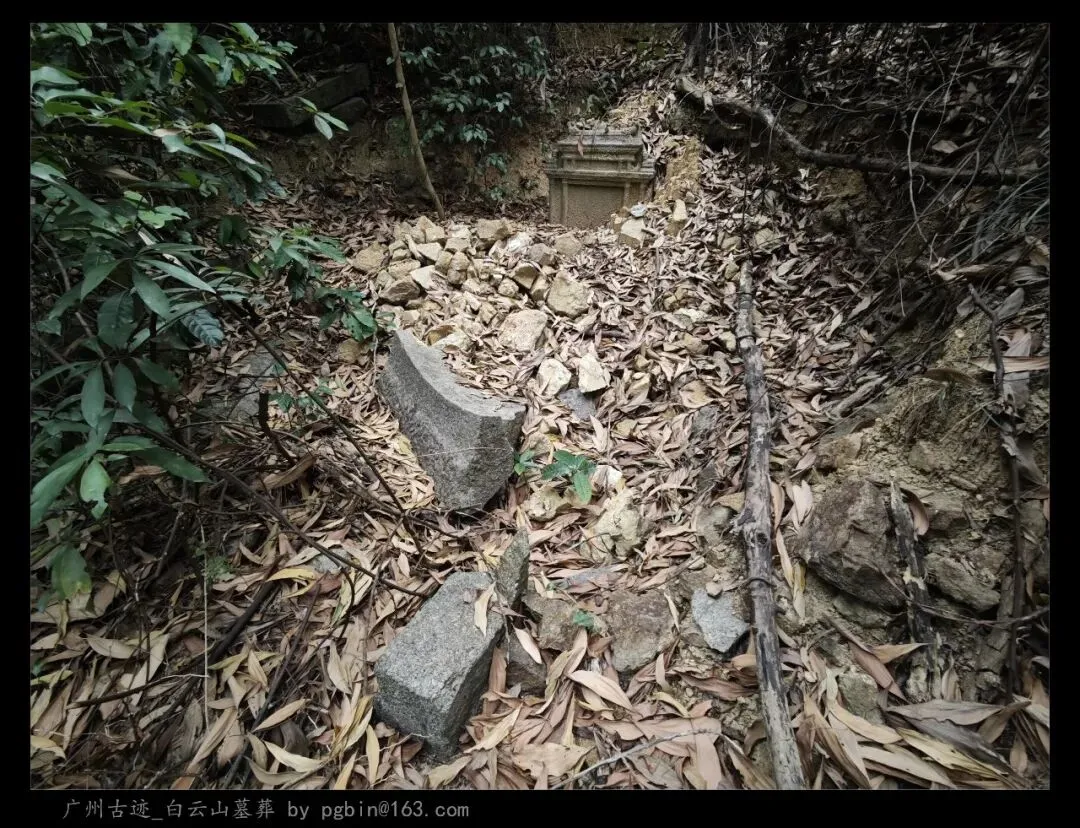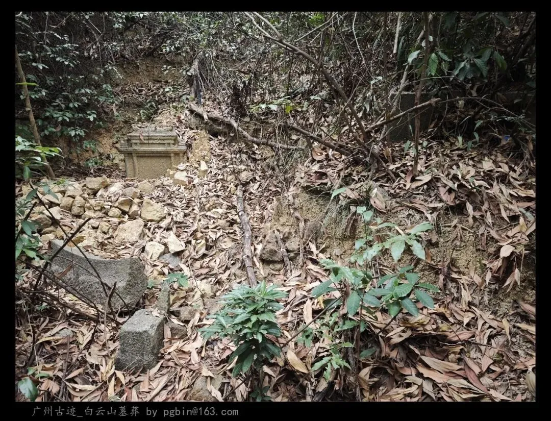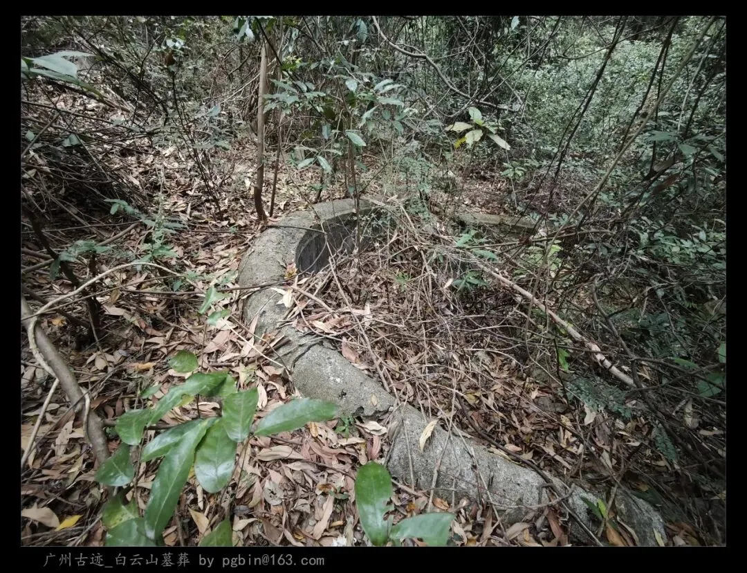 探访侧记:该墓位于白云山祥云岭,坐西北向东南,原来是一座小型花岗岩墓,现仅存月池、环垄和护岭遗址。
