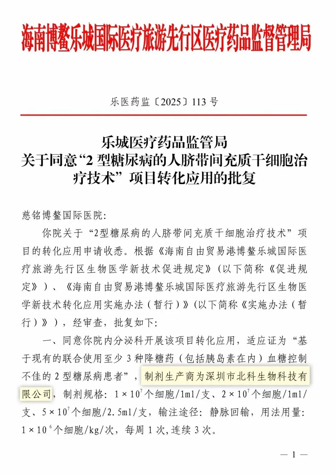 行业意义:依托乐城“国九条”特许政策,为技术转化提供快速通道,此为乐城第16项获批生物医学技术,标志我国糖尿病干细胞治疗进入临床应用阶段。