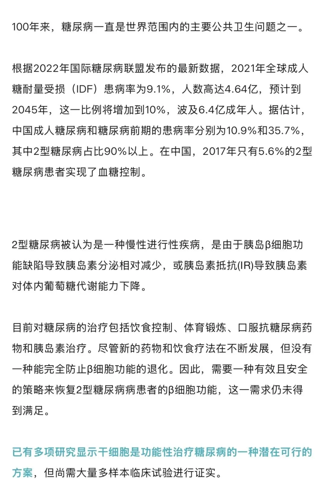 与传统治疗对比:干细胞疗法侧重组织修复,可能延缓并发症(如肾病、视网膜病变),而药物仅控制血糖。