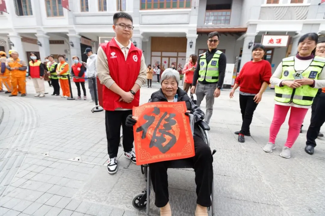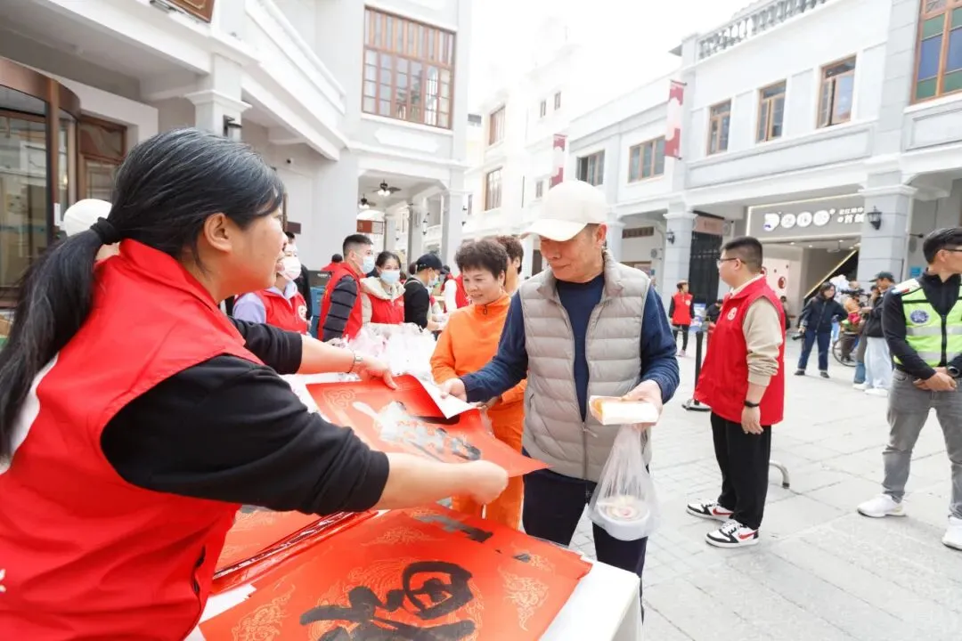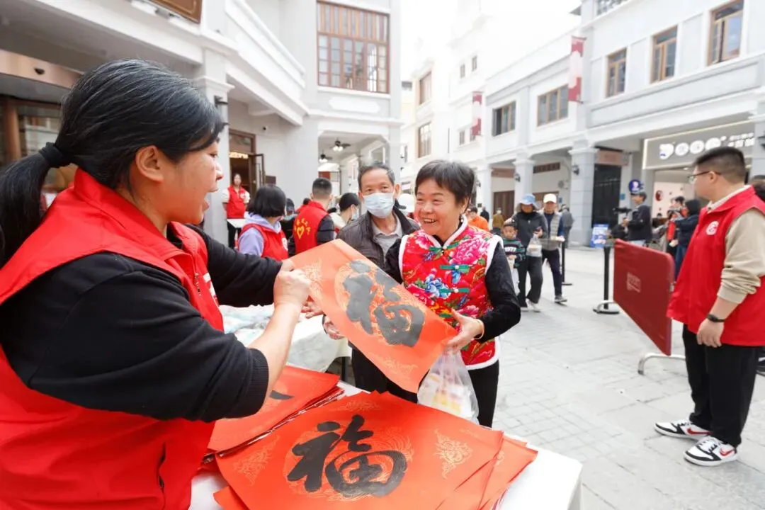 除了腊八粥,主会场另一侧还设置了“送福”区。现场书法家挥毫泼墨,一幅幅寓意吉祥的“福”字跃然纸上。刚捧过暖心腊八粥的市民纷纷移步至此,领取“福”字。“粥暖身,福暖心,这样的活动太有意义。”市民陈阿姨小心翼翼地将福字折好,将节日的温暖打包回家。