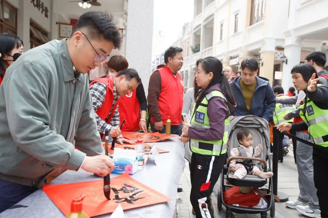 与此同时,东莞人民公园、莞城街道综合养老服务中心、莞城盈锋家居广场三个分会场也同步开展派粥与送福活动。各分会场的志愿者们早早来到现场,为周边群众与户外工作者送上热粥与福字,让更多人感受到了冬日温暖与友善东莞的城市温度。