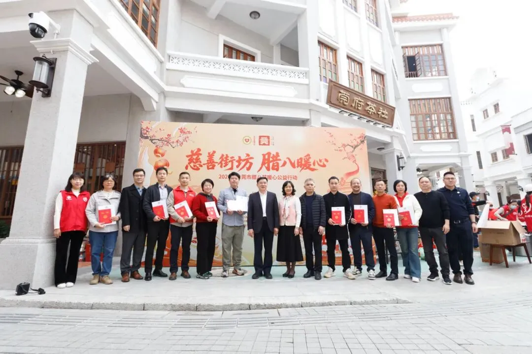 值此腊八节之际,为擦亮“友善东莞”品牌,传递城市温度,1月26日,由东莞市民政局指导,东莞市慈善会、莞城街道办事处联合主办的“慈善街坊 腊八暖心”公益行动在莞城举行。活动设置主、分会场,通过派发腊八粥、现场送“福”、上门送温暖等方式,向独居老人、困难群体、环卫工人、外卖员、协警辅警等群体送去节日温暖与关怀。东莞市民政局党组书记、局长、市慈善会会长黄荣峰,莞城街道党工委书记李汉容,东莞市民政局三级调研员、市慈善会常务副会长艾树珍,莞城街道党工委委员张永红参加活动。