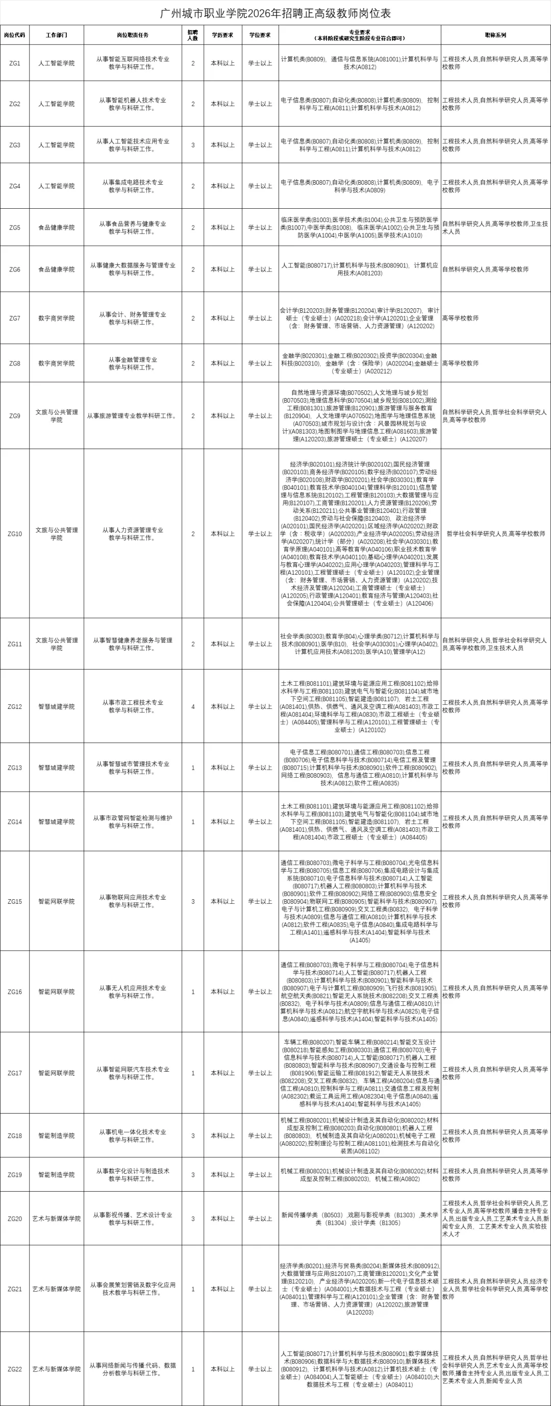 1.广州城市职业学院2026年招聘正高级教师岗位表