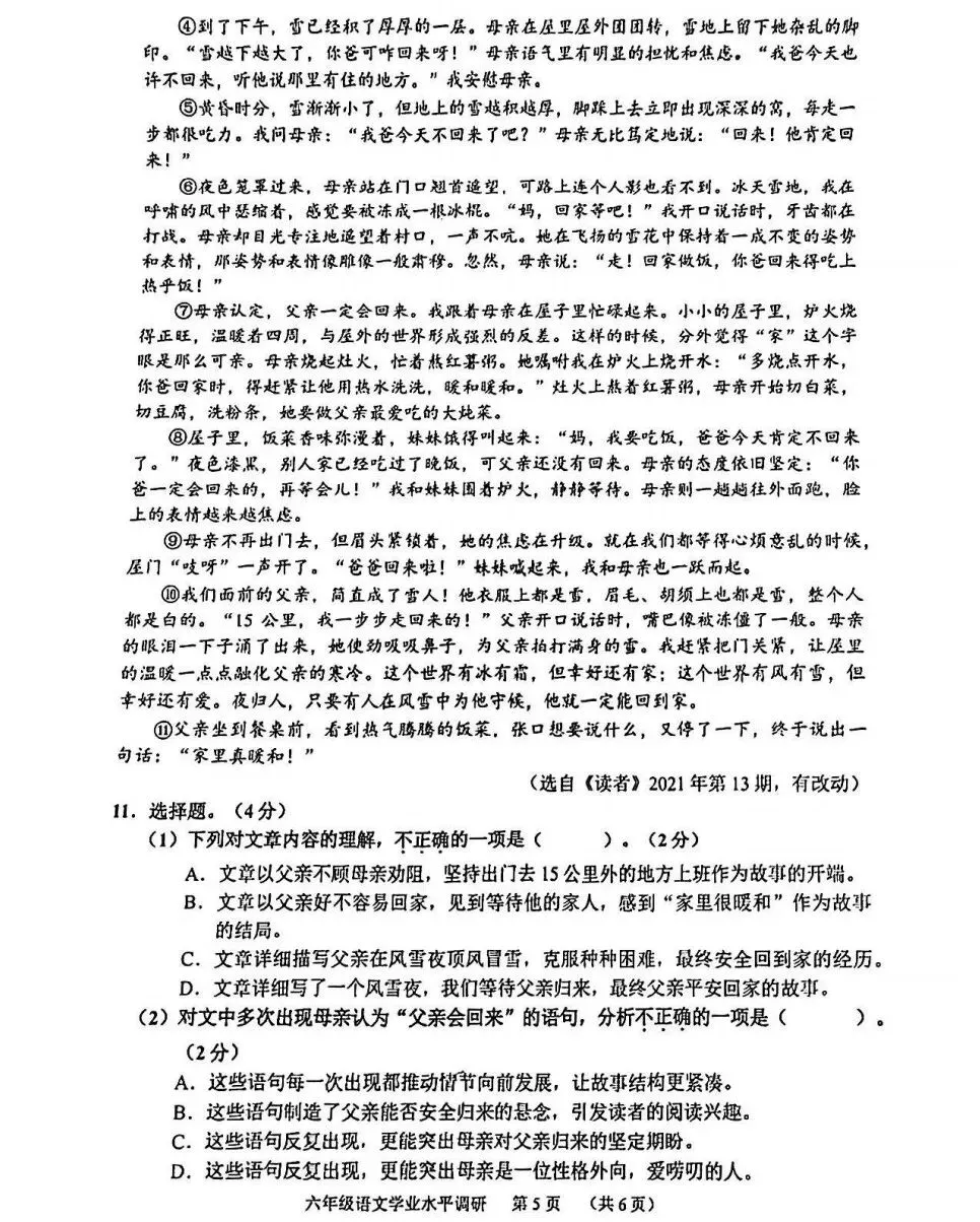 >广州市天河区2025-2026学年上学期六年级期末考试语文试题和答案