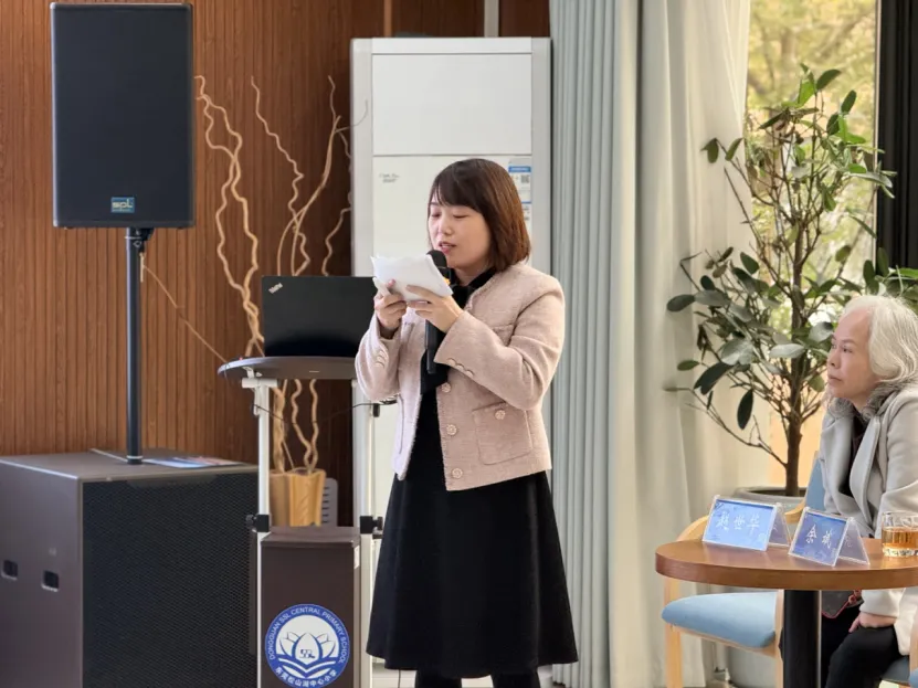 东华小学生态园校区校长徐丽鸾分享了本校“场景 + 实操 + 运用” 一体化教学体系的实践经验。