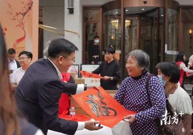 本次活动采用“集中发放+上门走访”模式开展。在集中发放点,外卖员、协警辅警等群体有序领取包含腊八粥、面包的暖心礼包,现场还设置了“送福”活动,为市民免费赠送“福”字。与此同时,由领导、慈善会工作人员和志愿者组成的慰问组,带着热粥和慰问物资前往社区探望独居长者,为他们送去温暖与关怀。